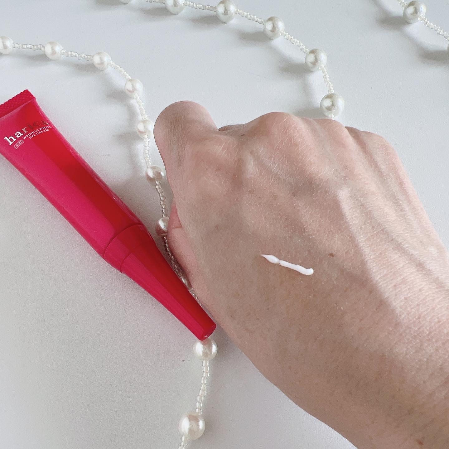 ナイアシンアミド配合でメラニンの生成を抑え、シミ・そばかすを防いでくれるよ💖 テクスチャーはこっくりなのに、サラッとしていて伸びも馴染みも◎ お顔全体に使えるので、目元に塗ったあとは、ほうれい線や口元にも塗ってケアしてるよ❣️