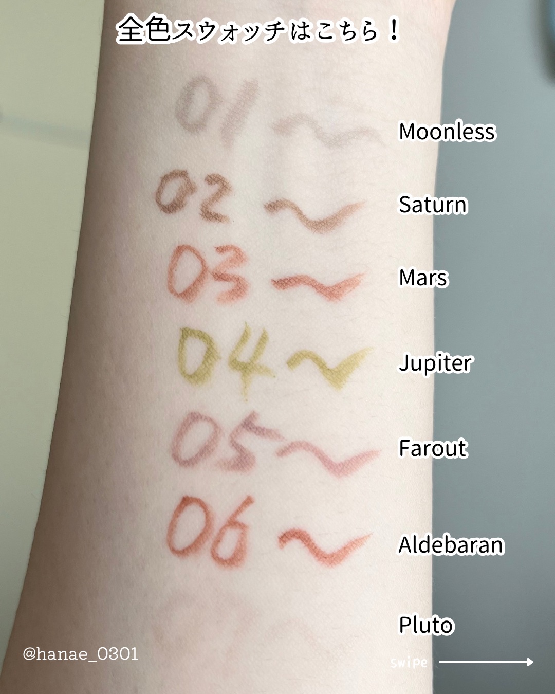 保湿力スキンケア下地 2本リピしてる。良い意味で尖っていない、 使いやすい下地。トーンアップもなく、 お肌が全体的にツヤツヤっとなる印象。 保湿力スキンケア下地 カバータイプ きれいに仕上がらない時と、そうでないときの 差が激しいんだよね…今のところ勝率2割なので なかなか手が伸びない。 保湿力スキンケア下地 シカグリーン 今年から定番化!シカグリーンには ブルーライトカット効果も追加されてるよ 水分力スキンケア下地 本体はピンクみがあるけど、伸ばすと無色で 艶っぽくしあがる。こちらも良い意味で 尖ってなくて使いやすい。
