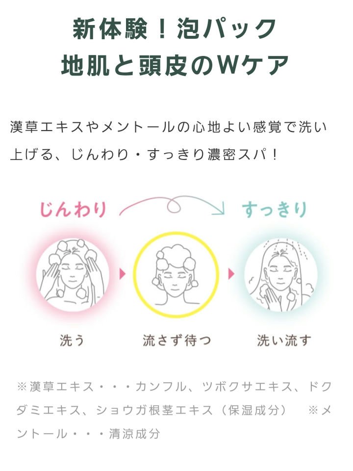 | 泡立てた後に1分ほど置くことで清涼感が出てきて、 物凄く心地よくてやみつきに。 お風呂から出たあとも頭皮のスッキリ感は続きます | 詳細を見る |