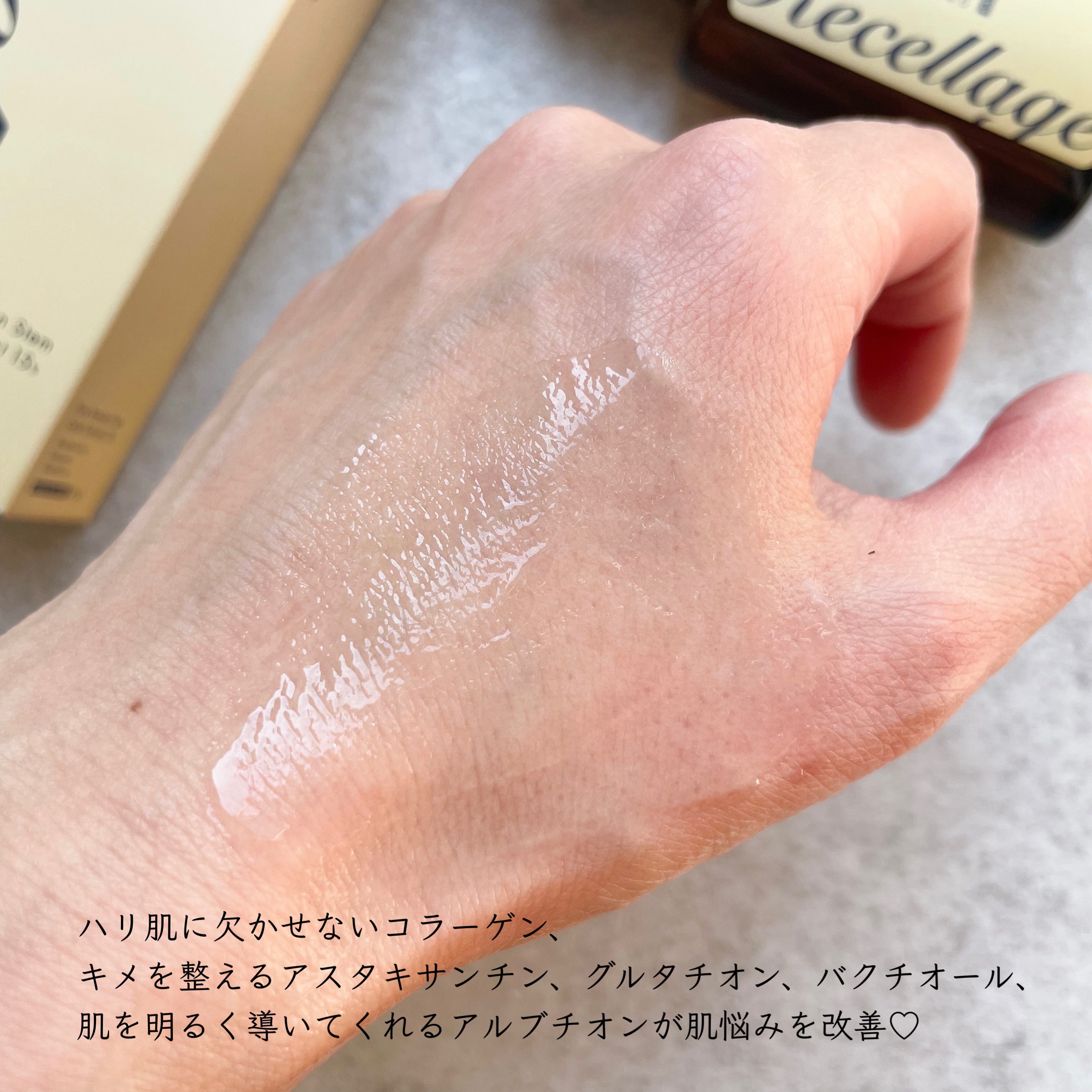 ヒト幹細胞培養液15%も高配合されている美容液⟡.· ヒト幹細胞培養液にはコラーゲンやヒアルロン酸などの皮膚組織をサポートする成長因子、サイトカインなど500種類以上ものタンパク質成分を含んでいてお肌の環境をサポートしてくれる⟡.· とろっとしたテクスチャーでお肌にもスっと馴染んでお肌の奥まで成分が届いてる感じがする𓂃🤍 レチノールの次世代型といわれるバクチオール配合でレチノールと同様にシワやたるみを改善する効果が期待できる美容成分でレチノールよりも刺激が少ないから敏感肌さんも安心して使えるよ𓂃⟡.·