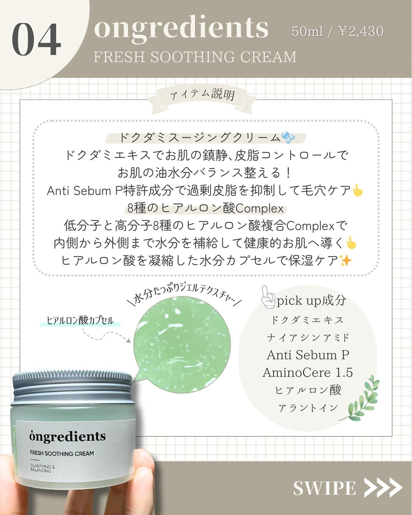 Ongredients Fresh Soothing Cream | 3,240円 |