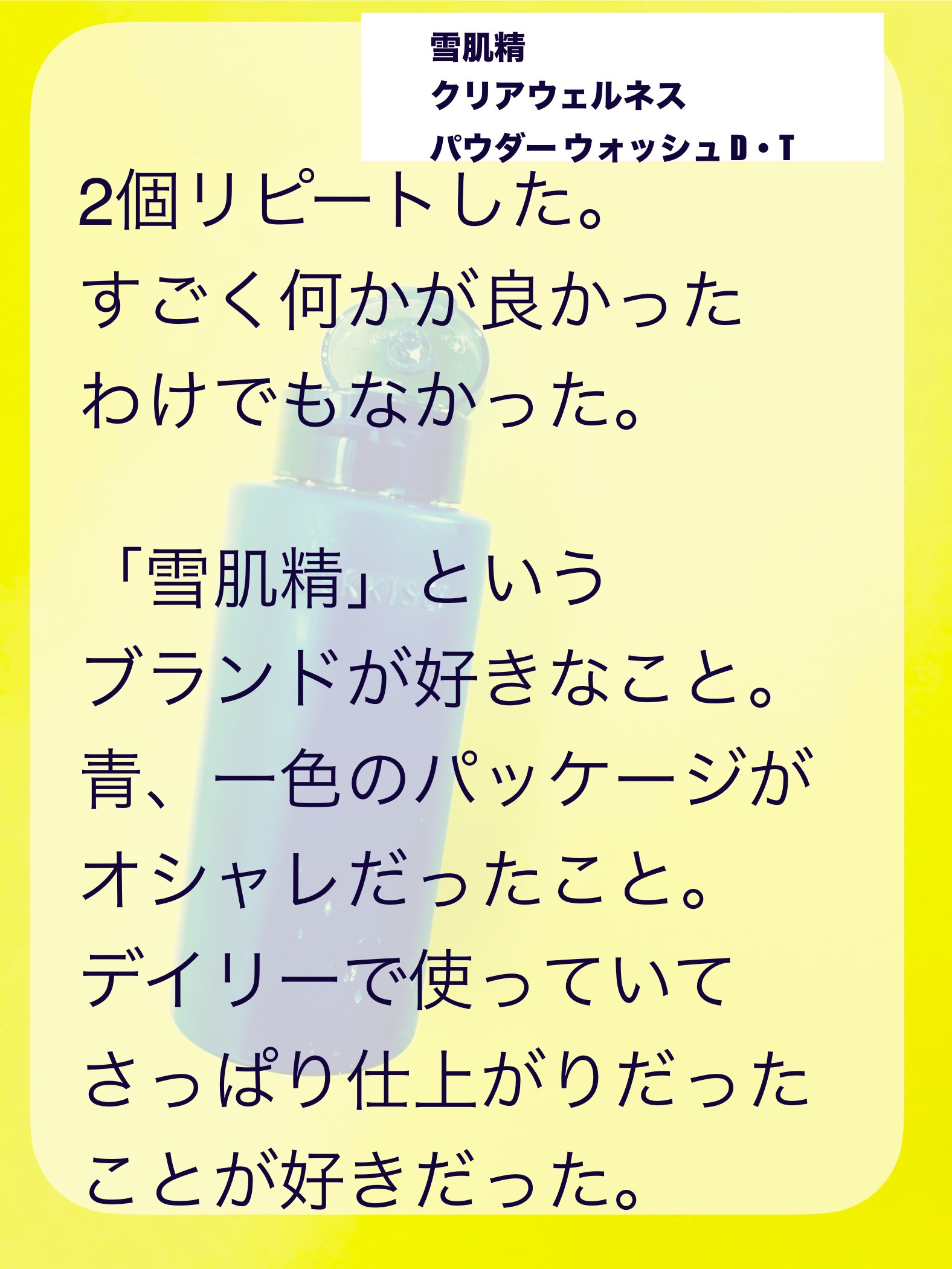 下地 SPF50+ PA++++ 付けてからしばらくして、ひんやり。 フェイスパウダー 10g SPF40 PA+++ ひんやり感強い。持続力もあり。 マット仕上がり。かなり白くなる! メイクフィクサー 80ml 香りあるけど、あまり感じない。