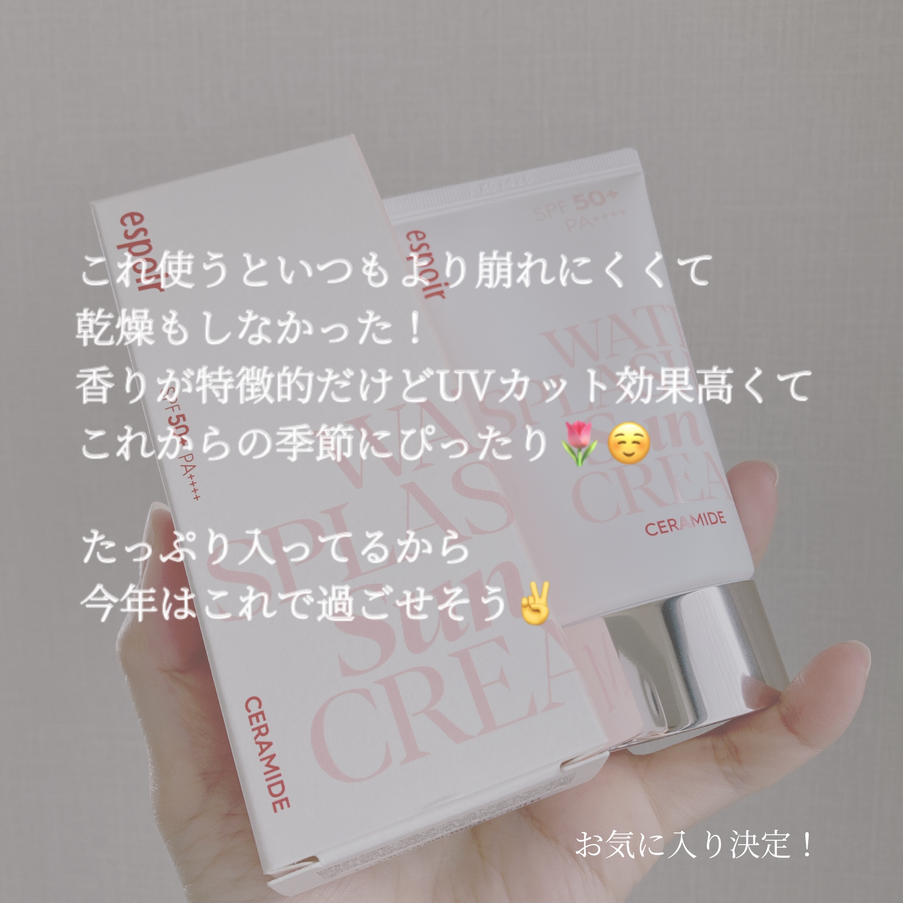 espoir日焼け止め🤍🤍🤍🤍🤍🤍🤍🤍🤍🤍『よいけどベタベタするよトーンアップ感』娘💗言ってたespoirウォータースプラッシュサンクリームセラミド60mlエスポア下地気になってる方はチェックしてみてください※個人の感想です#espoir#ウ...