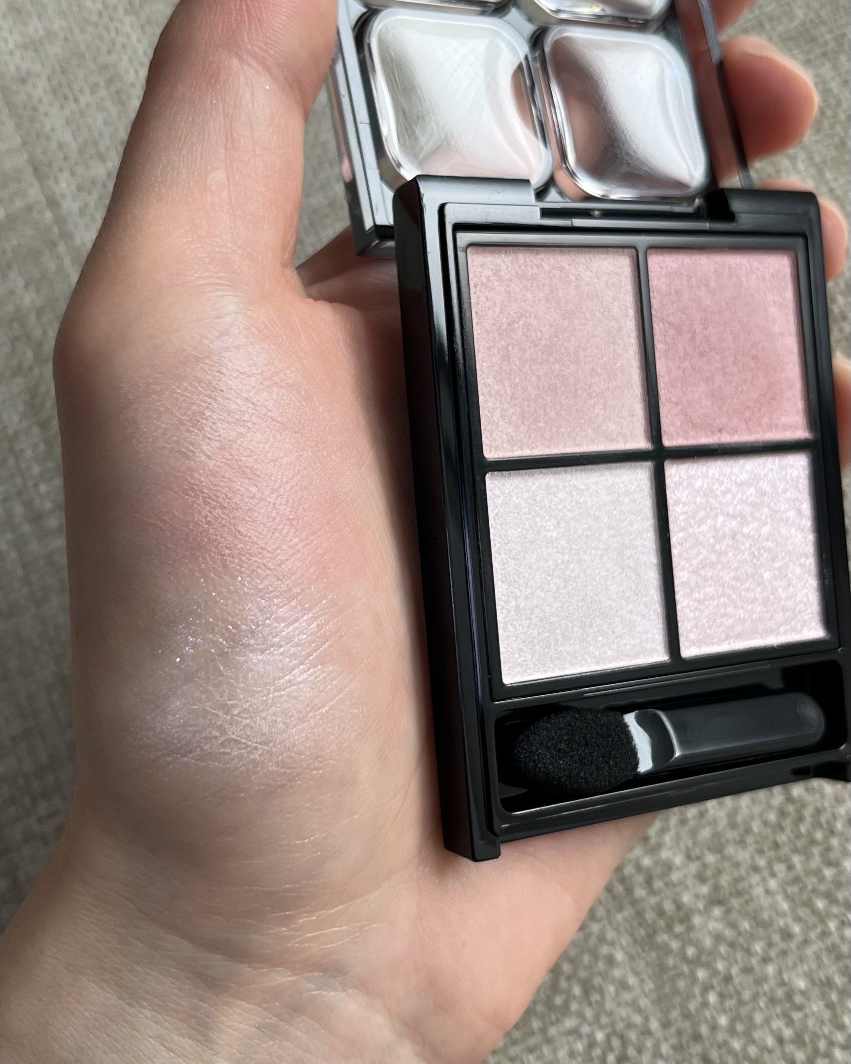 実物見ないで買ったんだけど、手元に届いて見た瞬間「あ、こりゃベスコスだわ」と思った!笑 色も可愛いんだけど、質感が絶妙…! 左上の変光ピンクのツヤ、右上のサラサラ細かい繊細ラメを始め、ツヤとマットがバランスよく入ってて最高💓 写真のメイクは右下のマットブラウンを控えめに他の4色メインで仕上げました! 透明感ある仕上がりで素敵🥺 マットブラウンをしっかり入れれば濃いめにも仕上げられると思う!また色々メイクパターン研究します〜🧐 迷ってる方はぜひ実物を見てみると良いかも!実物を見たらお迎えせずにはいられないハズ💓笑
