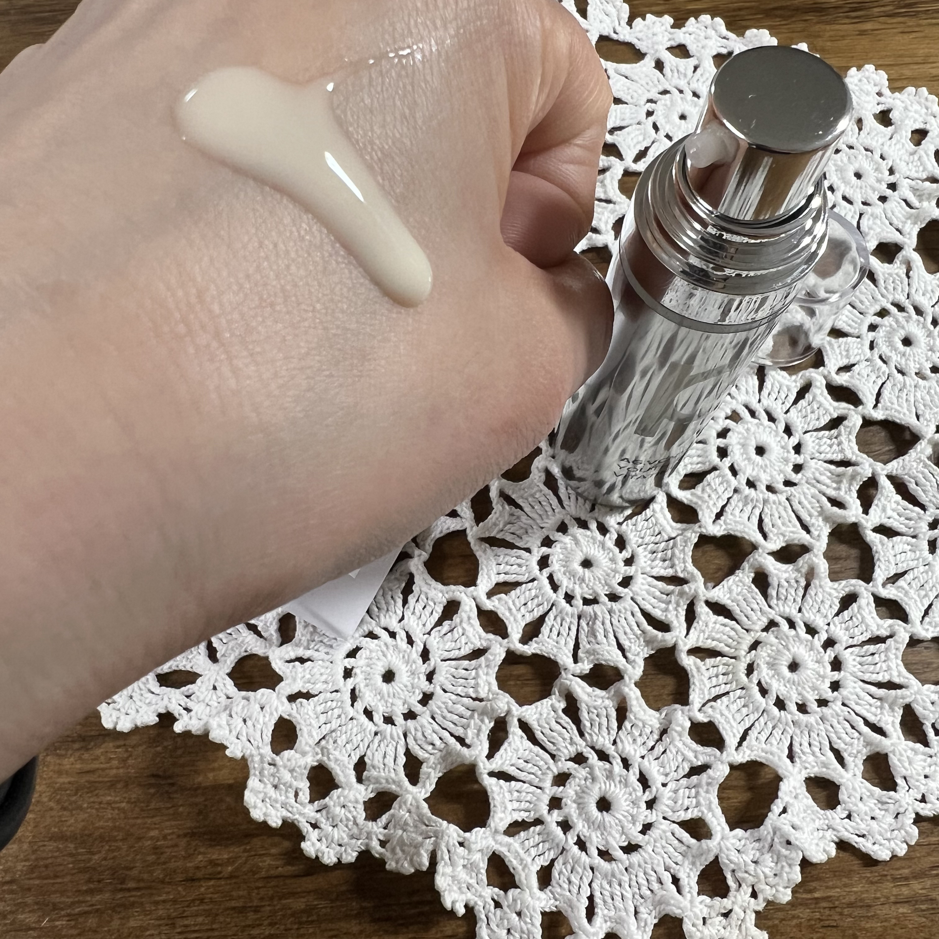 これ、すぐスタメンになったセラム! 一緒に使わない方がいいと言われている「レチノール」+「ビタミンC」 成分を安定化するとともにマイルドな使い心地に処方設計してるから、両方とも一緒に使えるんだね!! 少しとろみがあるゆるめのテクスチャー。 柔らかいから肌馴染みがよく、よく伸ばせます。