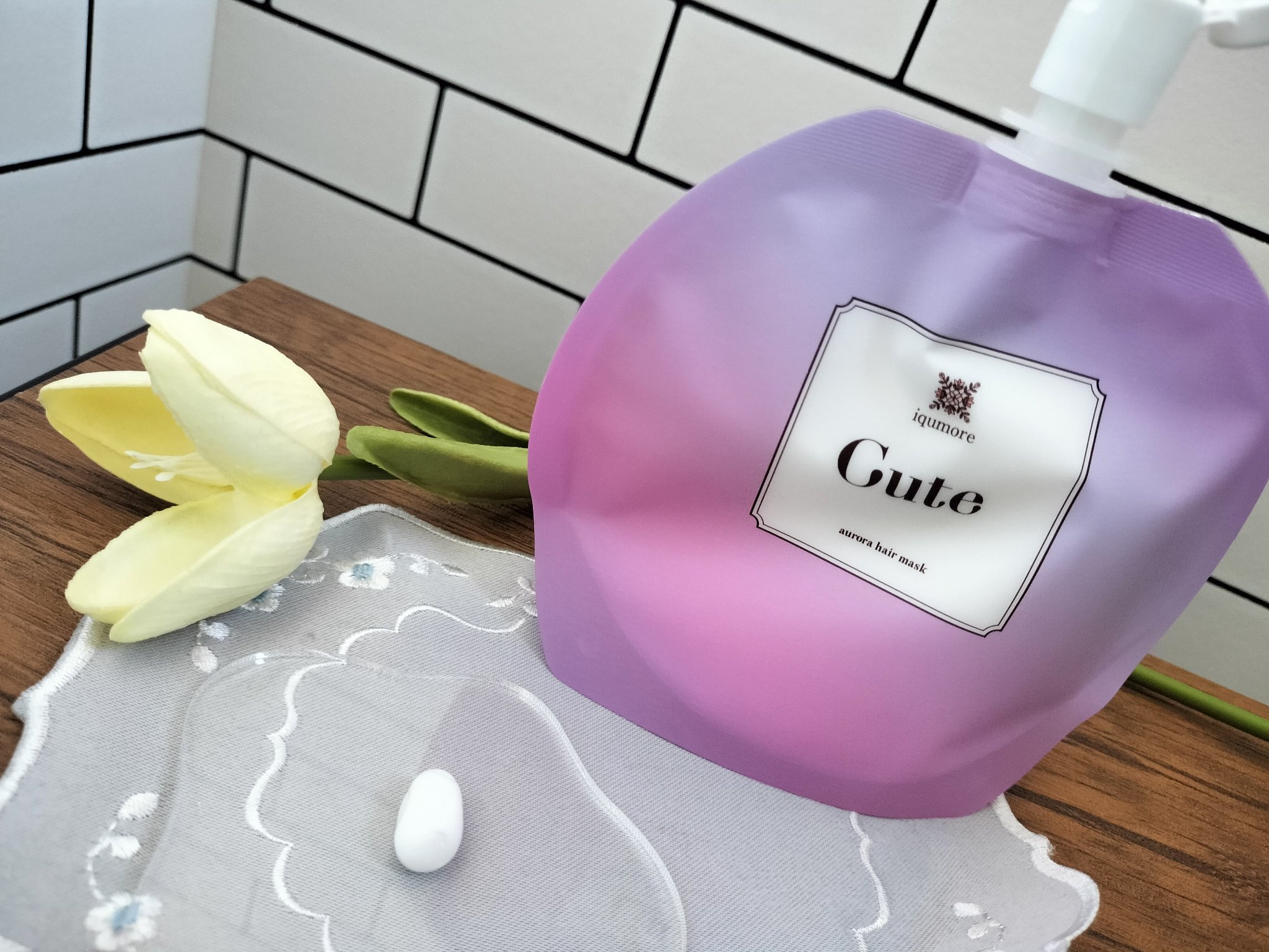 アールグレイティーのさわやかな香り。ダメージ、パサつき気になる髪のダメージケアしたくて、アットコスメTOKYOに行ってきました。Qoo10でも人気のヘアマスク「イクモアキュートオーロラヘアマスク」が目に留まり早速使ってみました。 シルキーカラーコーティングでヘアカラーのカラーキープ処方、ダメージケア成分、うねり抑制に着目したトリートメント。 香りがよくて翌朝の髪が気分良く決まりそうです。おすすめ❤