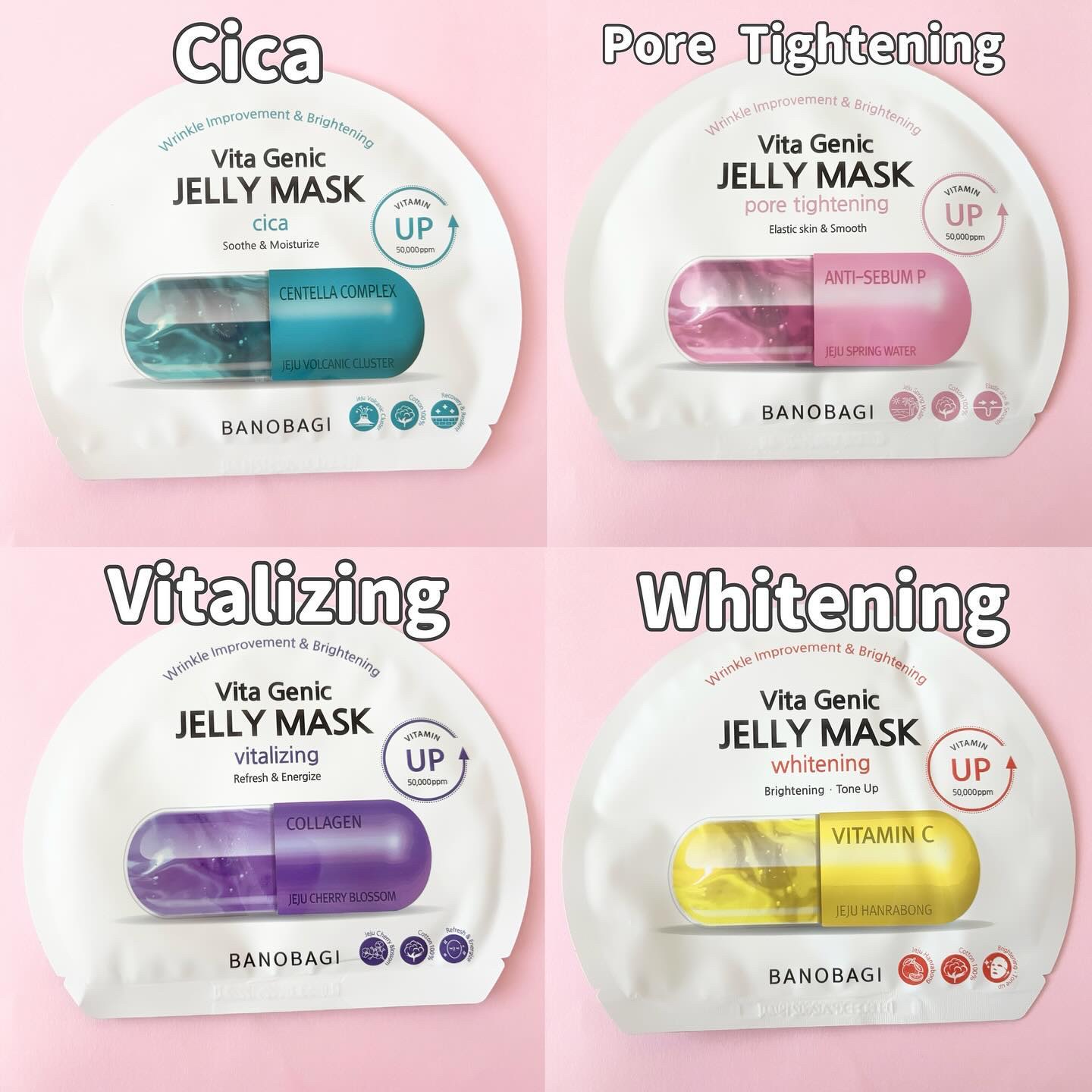 肌の弱い人でも使える皮膚科専門家が作った韓国コスメブランド🇰🇷BANOBAGI(バノバギ)『VITAGENICJELLYMASK』肌タイプや肌悩みにあわせて選べるマスクは全部で7種類☝🏻パックなのに、ゼリー状のぷるんとしたテクスチャー...