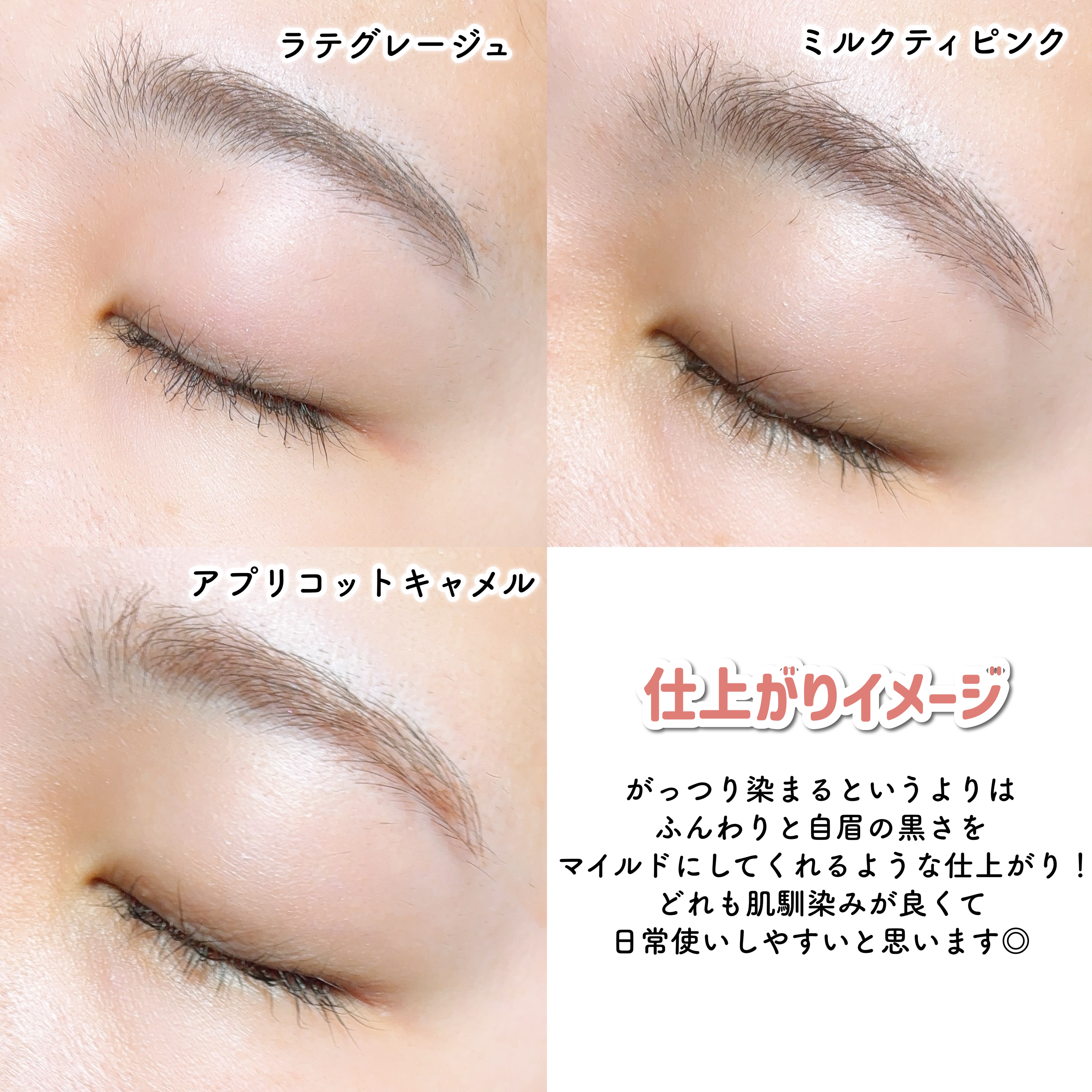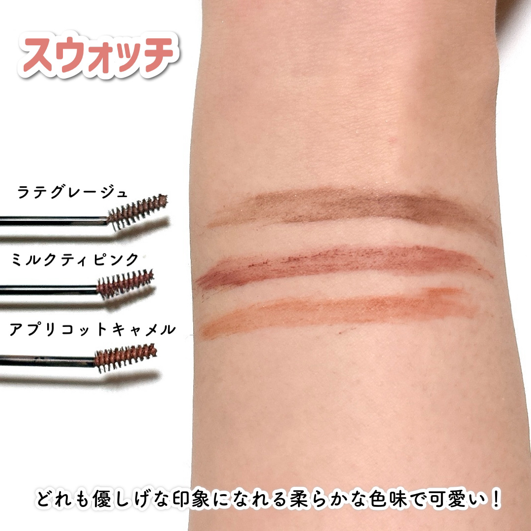 - 〈限定発売〉美容クリエイター水越みさとさん監修アイブロウマスカラ第2弾。 ・“眉の存在感を和らげる”ことをテーマに、春らしい絶妙なニュアンス感カラー。 ・地肌につきにくく塗りやすい角度つき極小ブラシ採用。 ・1本1本色づき自然になじむアイブロウマスカラ。 ミルクティピンク…温かみのある愛されピンクブラウン ラテグレージュ…ソフトな印象を与えるこなれグレーベージュ アプリコットキャメル…自然な抜け感が出るおしゃれオレンジブラウン