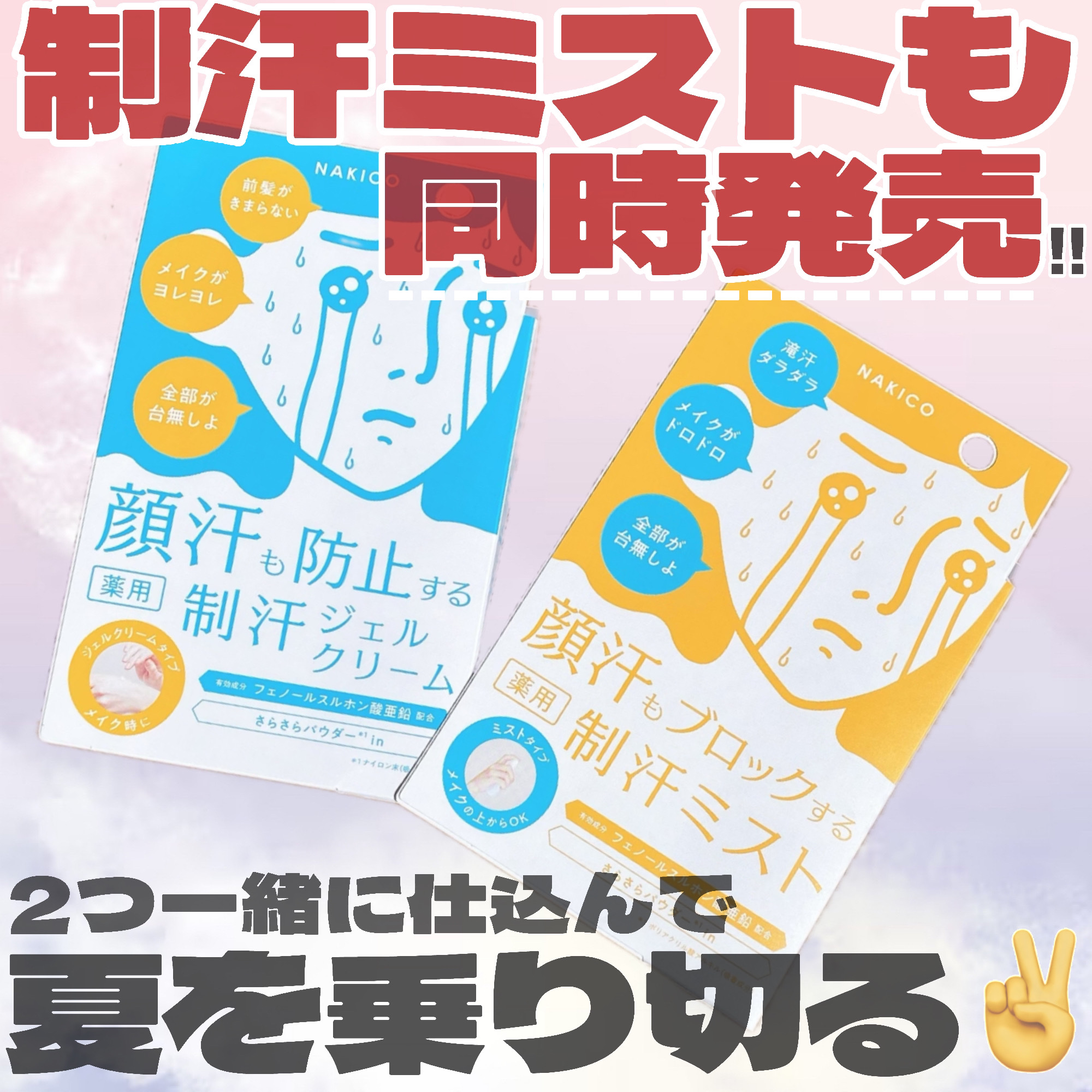 【今年もNAKICOの顔汗対策が登場!メイク崩れやテカリ防止に♡】NAKICO☑薬用制汗フェイスミスト☑薬用制汗フェイスジェルクリームともに医薬部外品各1,980円(税込)春夏からの汗対策に!顔の汗によるメイク崩れやテカリを防ぐ制汗ジェルクリ...