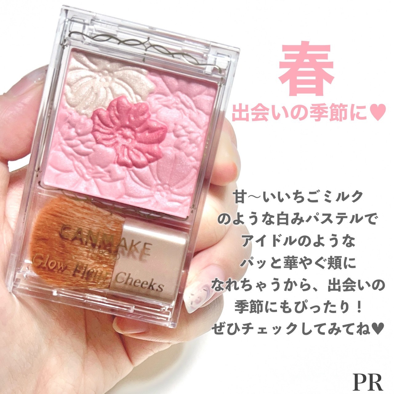 🐲CANMAKEグロウフルールチークス🐲17いちごミルクフルール🍓多幸感いっぱいのピュアなピンク♡いちごミルクみたいにピュアであまーいピンクカラーが登場!ひと塗りで、パッと華やぐツヤほっぺに新色のいちごミルクのような、白みパステルカラー!♥️...