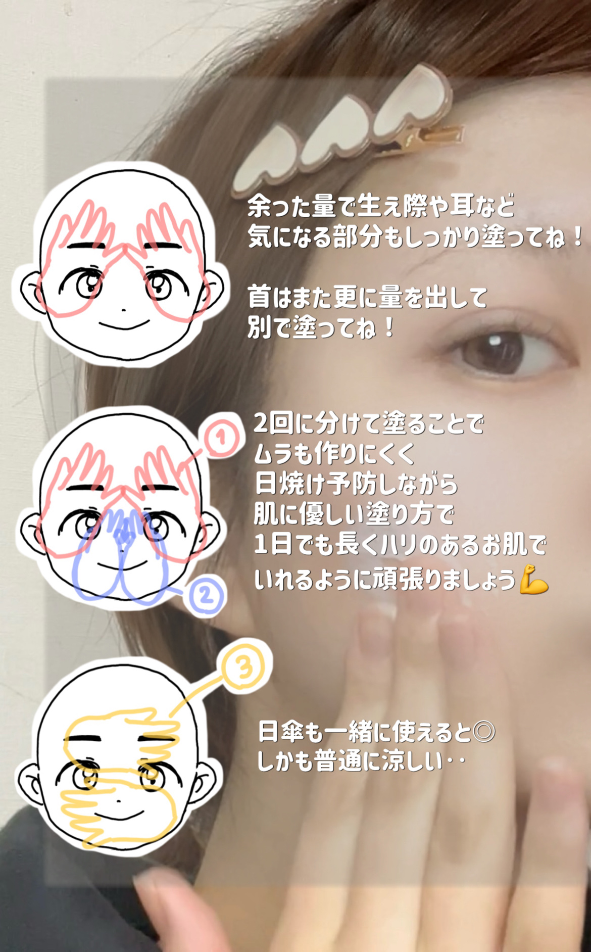 お肌を大事にする日焼け止めの塗り方。洗顔・スキンケアと同じでお肌が摩擦でダメージをうけるとキメがなくなりハリが失われてしまいます🥲紫外線対策したい!!でもお肌も労わりたいと言う方はぜひ試してみてね🫶擦らないタップしてつけるだけ年齢に抗っていき...
