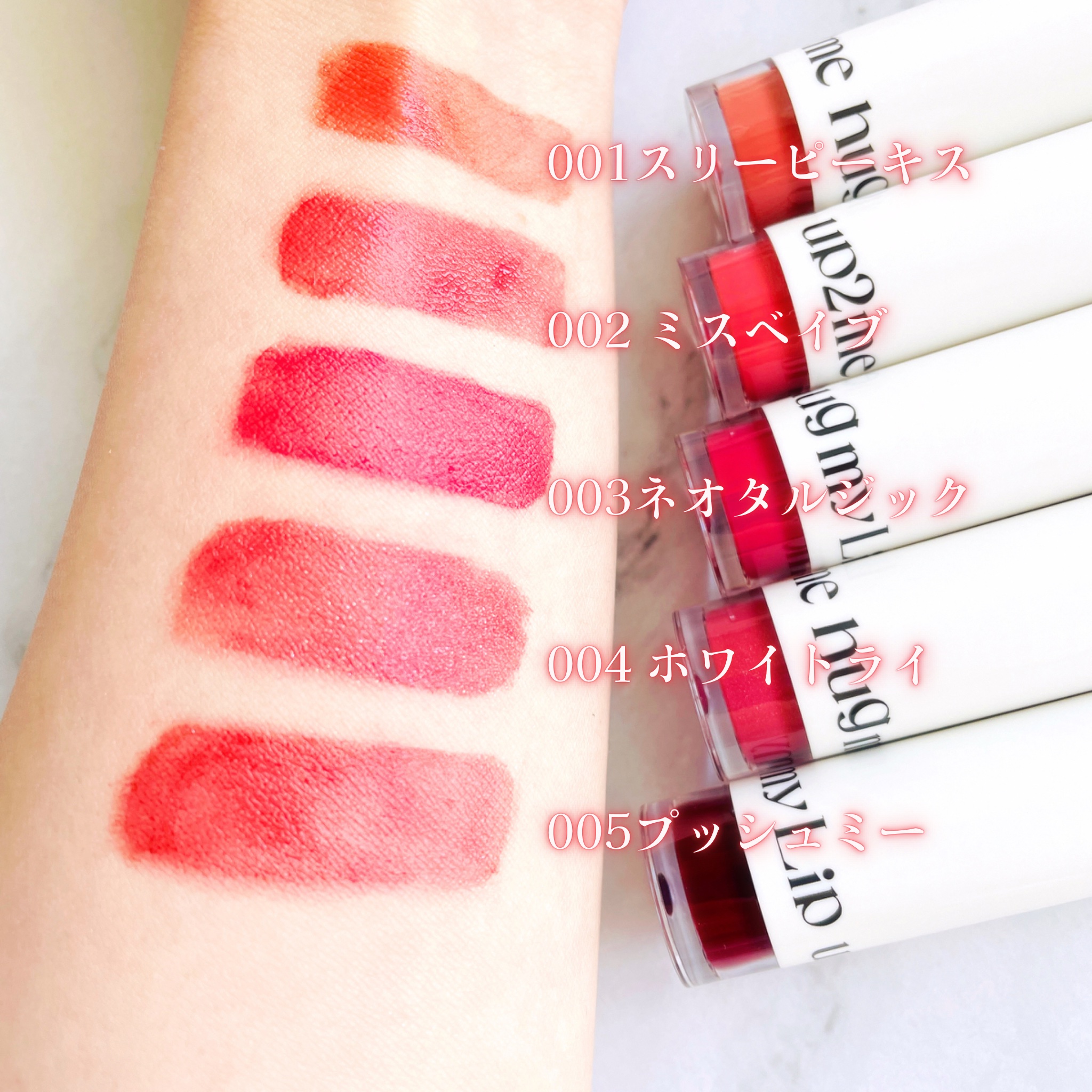 💄💋「UP2ME(アップトゥーミー))から誕生する【hugmyLip(ハグマイリップ)】をおためし。全色レビューしてみたのでぜひ、みんなも気になる色を探してみてね。さてさて〜【hugmyLip(ハグマイリップ)】の魅力はなんと言っても...1...
