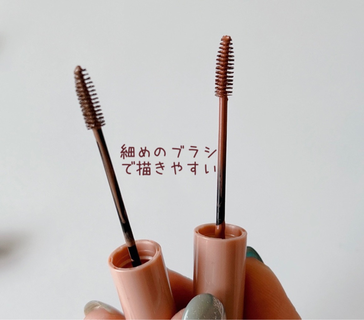 - ミニブラシでとにかく塗りやすい!! ふんわり仕上がる眉マスカラ 小回りの利くミニブラシがとっても塗りやすい眉マスカラ。 毛を1本1本逃さず、ナチュラルに染まります。 パリパリ感もなく、ふんわりとした自眉感のある仕上がりに! 地肌につきにくいのもうれしいポイント♡