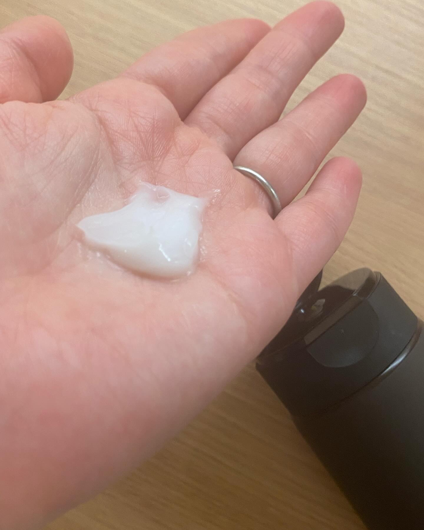 テクスチャはジェル状で、少し硬めです✨ 容器の中の気泡が、振りまくったら少し移動するような硬さです☺️ 不思議なつぶつぶが浮かんでますが、プッシュするといい感じに混ざって出てきます✨ しっとりとした使用感ですが、ベタつかないので使いやすいです👀