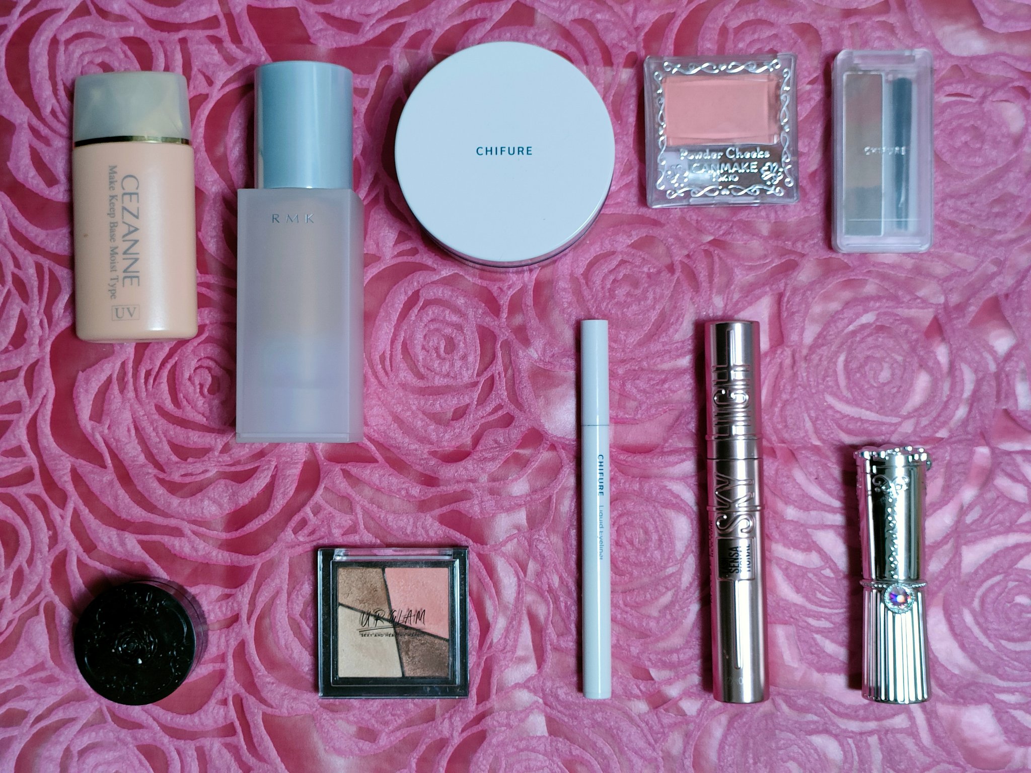 アリィー ニュアンスチェンジUV ジェル RSを、顔全体にまんべんなく塗ります。 RMK RMK ジェルクリーミィファンデーション 103を、顔全体にまんべんなく塗ります。 ジョンソンベビー ジョンソン ベビーパウダーを、顔全体にまんべんなく軽くはたきます。 THE BODY SHOP bronze shade warm glowを、両頬に塗ります。 KATE リフレクトミラーアイズ BR-1の締め色を、眉毛全体にまんべんなく塗ります。 URGLAM UR GLAMBLOOMING EYE COLOR PALETTE 01を、使用しました。 ちふれ リキッド アイライナー 筆ペンタイプ BK30 ブラックを、塗ります。 CEZANNE エアリーカールマスカラを、まつ毛全体にまんべんなく塗ります。 MAYBELLINE NEW YORK コロッサルボリュームエクスプレスを、まつ毛全体にまんべんなく塗ります。 MAYBELLINE NEW YORK SPステイ マットインク 135を、唇全体にまんべんなく塗ります。