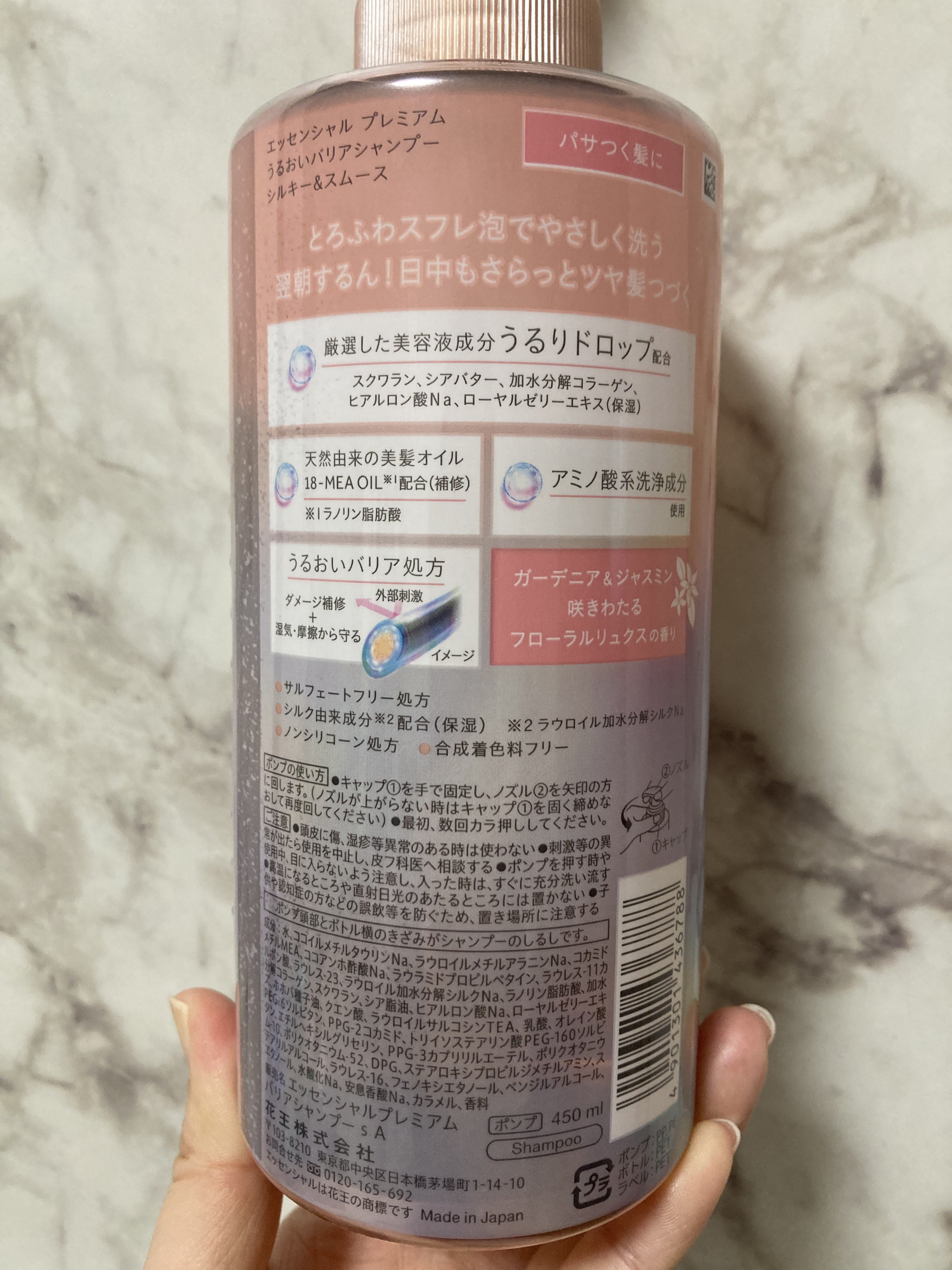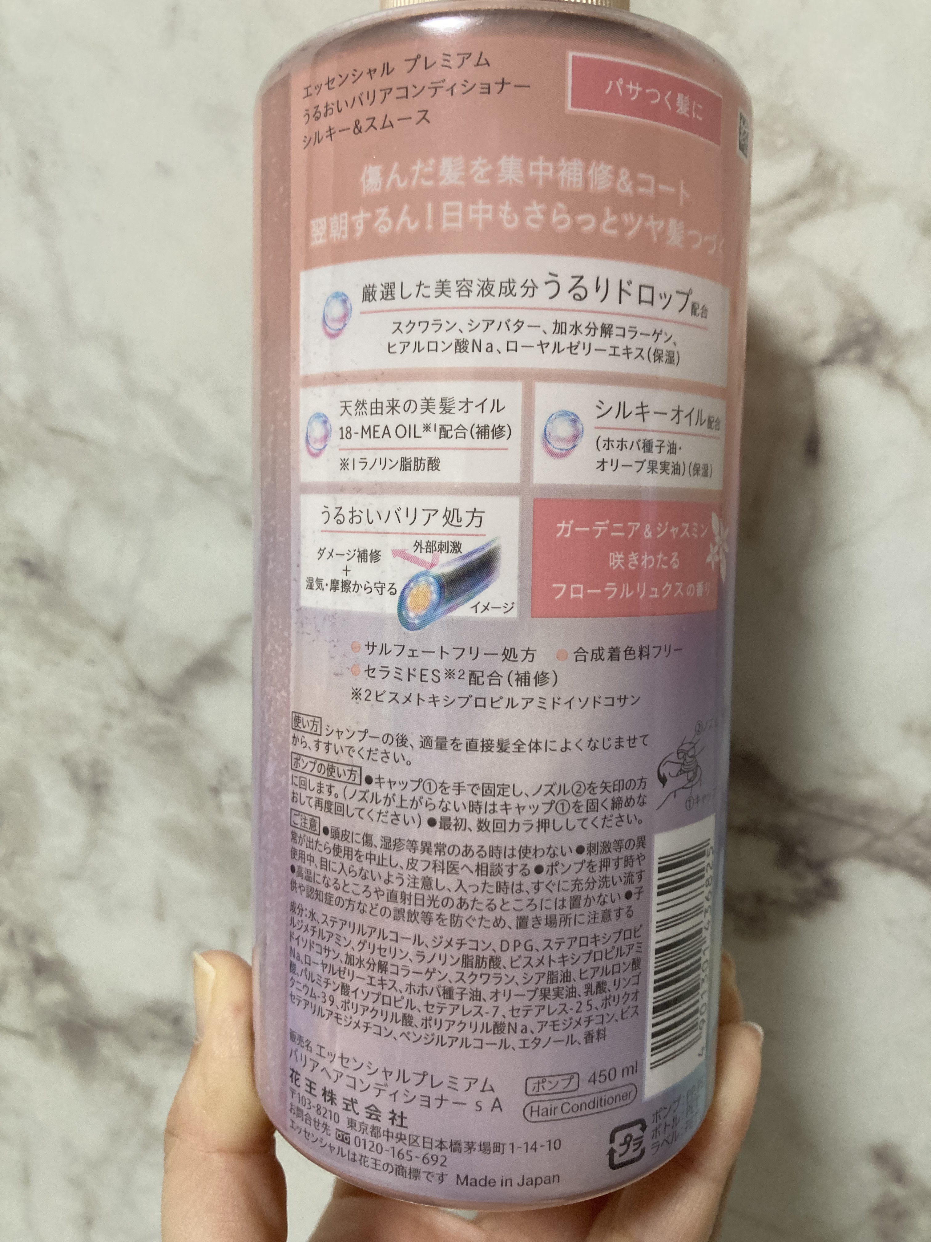 【先日使ってみて良かったので。。。💕】エッセンシャルプレミアムうるおいバリアシャンプー/コンディショナーシルキー&スムース先日ヘアミルクを使ってみて良かったのでシャンプーたちもGET✨お値段もお手頃価格なのに香りも女の子らしい香りが続く🫧🫧き...