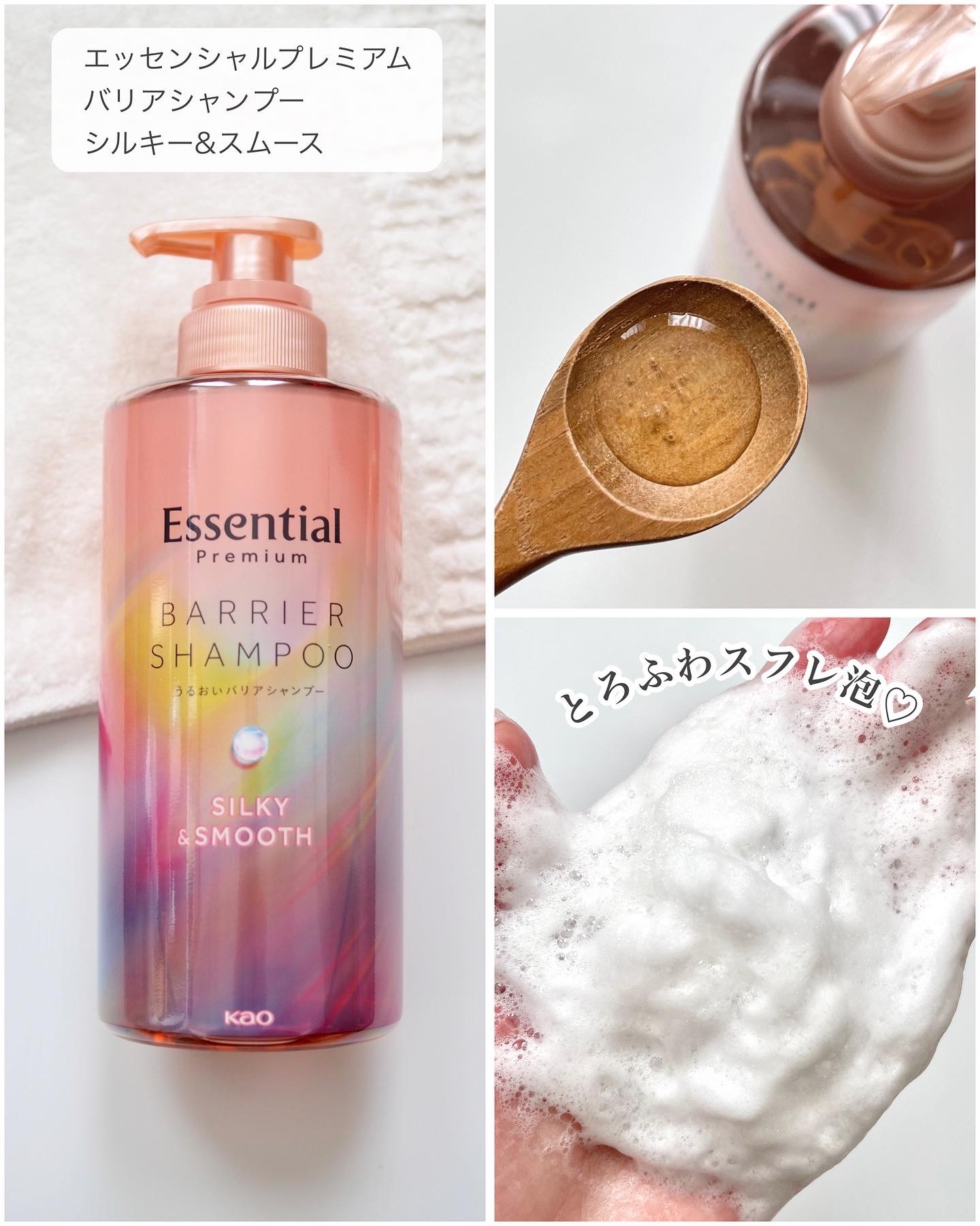 パサつく髪に。とろふわスフレ泡でやさしく洗う。翌朝するん!日中もさらっとツヤ髪つづく。エッセンシャルプレミアム🌸🫧『バリアシャンプーコンディショナーシルキー&スムース』𓈒𓏸𓐍𓂃𓈒𓏸𓂃◌𓈒𓐍𓈒𓈒𓏸𓐍𓂃𓈒𓏸𓂃◌𓈒𓐍𓈒泡立ちがとってもよくしっかり洗...