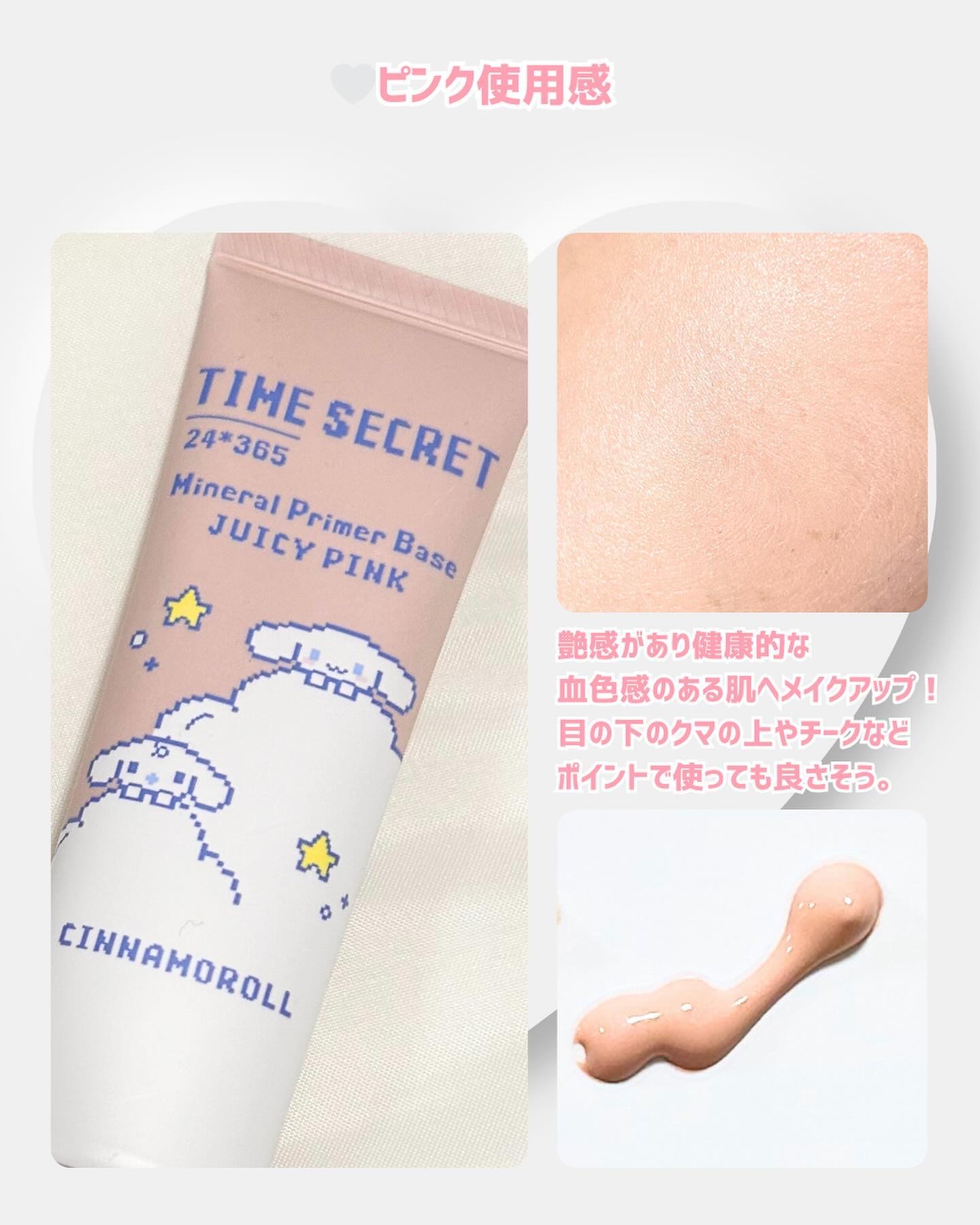 タイムシークレット誕生10周年記念のクロミちゃんとのパッケージコラボ📦🌟 3種類の肌悩みに合わせて選べる化粧下地🫶🏻🍒 私は、クリアが1番好き🥹 肌につけた時に1番、自分にしっくりきたのと色浮きしないし私の肌色に馴染んでた🥨 SPF36 PA+++の紫外線防止力があるよ!紫外線はシミになってしまう主な原因て言われてるしやっぱり肌パーソナル気にしながらも下地からしっかり紫外線予防しよう🥹