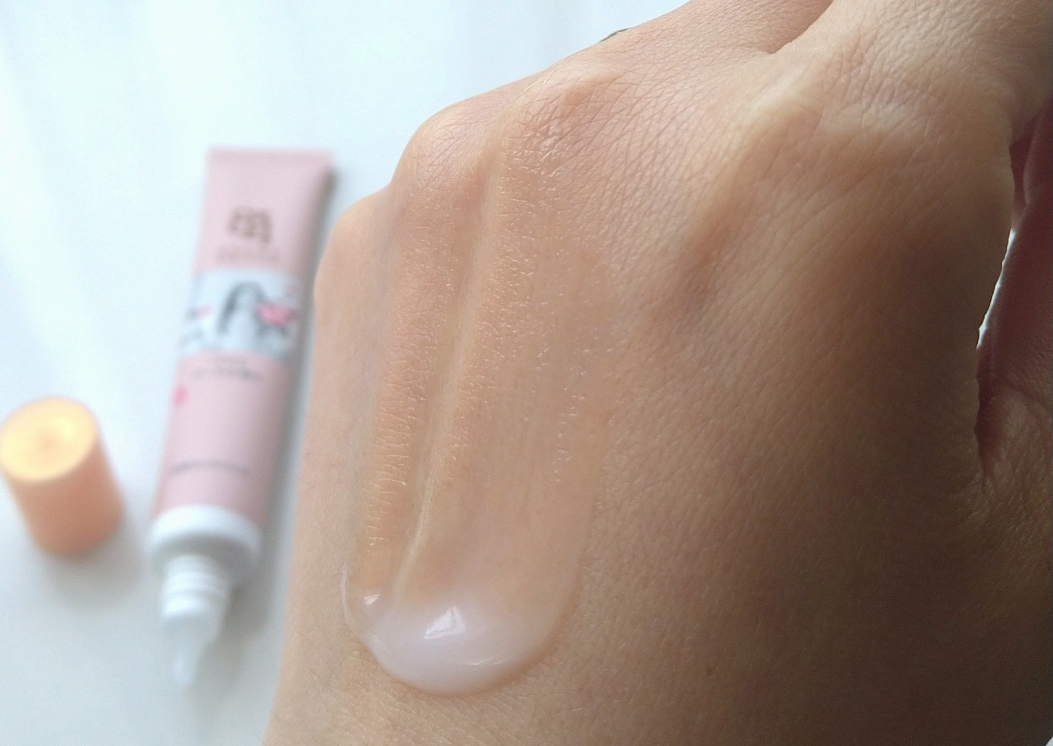 アロマスイッチ 涼感ネックジェルつかってみました〜 ひんやりとした乳白色のジェル。やわらかめのテクスチャーでノビがよく、すぐに肌になじんでいきました。 摩擦に強く落ちにくいこすれプルーフ処方なので、朝に首周りに塗ると夕方までベタつくことがなかったです。
