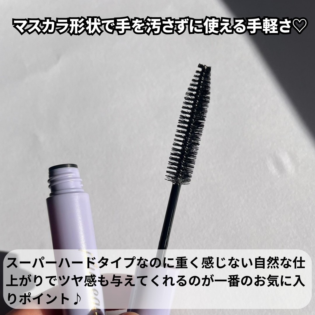 - 前髪やアホ毛をひと塗りでしっかり整えて長時間ホールドする、スーパーハードタイプのジェル状のまとめ髪スタイリング。 従来品*よりも、より高いスタイリングキープ力を実現して長時間しっかりとホールド。 気になる部分をサッと撫でるだけ、ブラシについているジェル状の保湿ケア成分で、つくった前髪を長時間ホールドしてサロン級の仕上がりに。 アホ毛やおくれ毛、パサつきもスッと抑えます。マスカラ形状なので手を汚さずに使えて、ポーチにも入るサイズなので持ち運びも便利。 一般的なアイメイク用マスカラよりも大型なブラシを採用し、ひと塗りで広い面積をカバーできて髪にひっかかりにくく狙った乱れ髪を整えます。 塗った箇所だけがベタっと重い仕上りになることもなく、自然な形でしっかりキープ。 ジャスミン&リリーの香り。 12月8日LOFT先行販売 *自社製品内比較