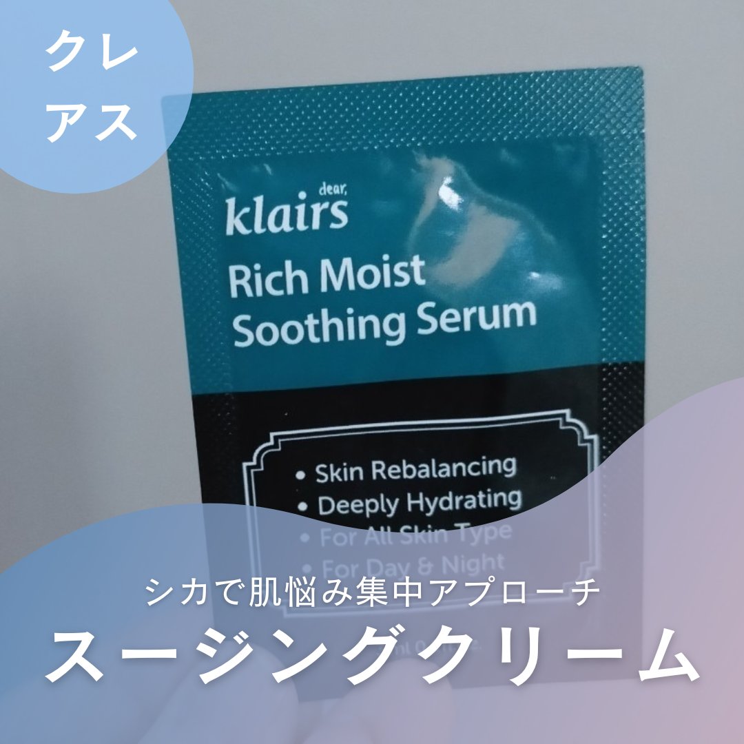リッチなテクスチャですーっと溶け込むように馴染むがやみつき!Klairsのリッチモイストスージングクリームこう見えてたっぷり80mlも入ってるのがチューブタイプのいいところだよね、嵩張らない。スージングと名前にあるだけにツボクサエキスが配合、...