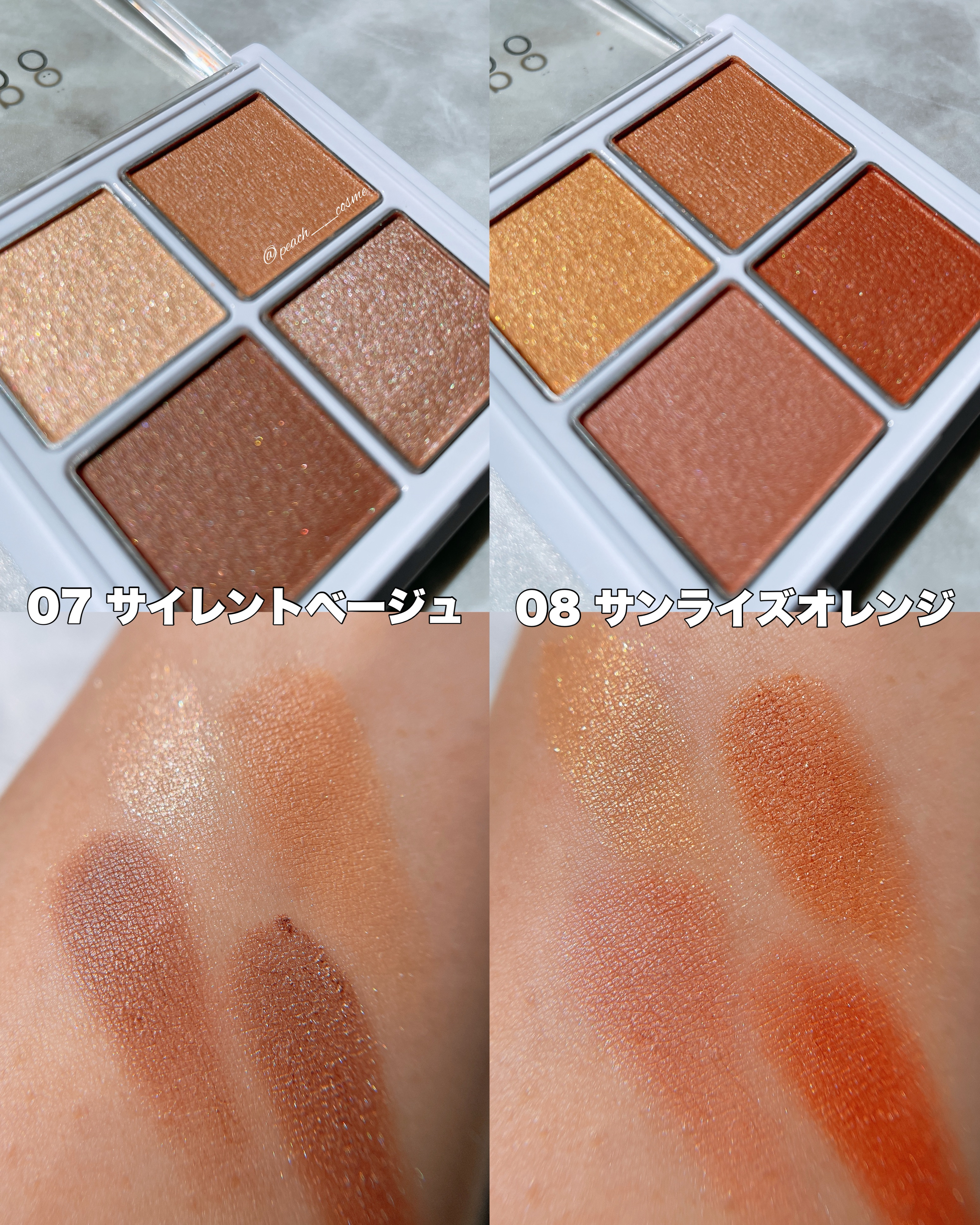 - <01 ストロベリーショコラ> ジメチコン、タルク、(ジメチコン/ビニルジメチコン)クロスポリマー、トリ(カプリル酸/カプリン酸)グリセリル、カルナウバロウ、クロルフェネシン、デヒドロ酢酸Na、ラウロイルリシン、トコフェロール、シリカ、ホウケイ酸(Ca/Al)、マイカ、酸化チタン、酸化鉄、酸化スズ、リンゴ酸ジイソステアリル、ジエチルヘキサン酸ネオペンチルグリコール、ヘキサ(ヒドロキシステアリン酸/ステアリン酸/ロジン酸)ジペンタエリスリチル、セスキイソステアリン酸ソルビタン、ミリスチン酸亜鉛、硫酸Ba、(+/ー)シリカ、グンジョウ、赤226、赤202、コンジョウ、水酸化Al <02 スモーキーブルー> ジメチコン、タルク、(ジメチコン/ビニルジメチコン)クロスポリマー、トリ(カプリル酸/カプリン酸)グリセリル、カルナウバロウ、クロルフェネシン、デヒドロ酢酸Na、ラウロイルリシン、トコフェロール、シリカ、ホウケイ酸(Ca/Al)、マイカ、酸化チタン、酸化鉄、酸化スズ、リンゴ酸ジイソステアリル、ジエチルヘキサン酸ネオペンチルグリコール、ヘキサ(ヒドロキシステアリン酸/ステアリン酸/ロジン酸)ジペンタエリスリチル、セスキイソステアリン酸ソルビタン、ミリスチン酸亜鉛、硫酸Ba、(+/ー)シリカ、グンジョウ、赤226、赤202、コンジョウ、水酸化Al <03 スパイシーオレンジ> ジメチコン、タルク、トリ(カプリル酸/カプリン酸)グリセリル、(ジメチコン/ビニルジメチコン)クロスポリマー、カルナウバロウ、クロルフェネシン、デヒドロ酢酸Na、ラウロイルリシン、トコフェロール、シリカ、マイカ、ホウケイ酸(Ca/Al)、酸化チタン、酸化鉄、酸化スズ、リンゴ酸ジイソステアリル、ジエチルヘキサン酸ネオペンチルグリコール、ヘキサ(ヒドロキシステアリン酸/ステアリン酸/ロジン酸)ジペンタエリスリチル、セスキイソステアリン酸ソルビタン、ミリスチン酸亜鉛、水酸化Al、硫酸Ba、グンジョウ <04 ダズルベージュ> ジメチコン、タルク、トリ(カプリル酸/カプリン酸)グリセリル、(ジメチコン/ビニルジメチコン)クロスポリマー、カルナウバロウ、クロルフェネシン、デヒドロ酢酸Na、ラウロイルリシン、トコフェロール、マイカ、酸化チタン、ホウケイ酸(Ca/Al)、酸化鉄、酸化スズ、リンゴ酸ジイソステアリル、ジエチルヘキサン酸ネオペンチルグリコール、シリカ、ヘキサ(ヒドロキシステアリン酸/ステアリン酸/ロジン酸)ジペンタエリスリチル、セスキイソステアリン酸ソルビタン、ミリスチン酸亜鉛、硫酸Ba、水酸化Al <05 ヌーディピーチ> トリ(カプリル酸/カプリン酸)グリセリル、タルク、ダイマージリノール酸ジ(イソステアリル/フィトステリル)、カルナウバロウ、シリカ、ダイマージリノール酸ダイマージリノレイルビス(ベヘニル/イソステアリル/フィトステリル)、トコフェロール、マイカ、ホウケイ酸(Ca/Al)、酸化チタン、酸化鉄、グンジョウ、酸化スズ、合成フルオロフロゴパイト、ジフェニルシロキシフェニルトリメチコン、水添ポリデセン、アルミナ、(イソステアリン酸ポリグリセリル-2/ダイマージリノール酸)コポリマー、ジメチコン、ジステアリン酸Al、ステアリン酸Mg、水酸化Al、硫酸Ba、赤226、リンゴ酸ジイソステアリル、ジエチルヘキサン酸ネオペンチルグリコール、ヘキサ(ヒドロキシステアリン酸/ステアリン酸/ロジン酸)ジペンタエリスリチル、ミリスチン酸亜鉛、クロルフェネシン、デヒドロ酢酸Na、セスキイソステアリン酸ソルビタン <06 クレールカーキ> トリ(カプリル酸/カプリン酸)グリセリル、タルク、ダイマージリノール酸ジ(イソステアリル/フィトステリル)、カルナウバロウ、シリカ、ダイマージリノール酸ダイマージリノレイルビス(ベヘニル/イソステアリル/フィトステリル)、トコフェロール、水酸化Al、マイカ、ホウケイ酸(Ca/Al)、酸化チタン、酸化鉄、酸化スズ、合成フルオロフロゴパイト、ジフェニルシロキシフェニルトリメチコン、水添ポリデセン、アルミナ、(イソステアリン酸ポリグリセリル-2/ダイマージリノール酸)コポリマー、ジメチコン、ジステアリン酸Al、ステアリン酸Mg、硫酸Ba、グンジョウ <07 サイレントベージュ> トリ(カプリル酸/カプリン酸)グリセリル、タルク、ダイマージリノール酸ジ(イソステアリル/フィトステリル)、シリカ、カルナウバロウ、ダイマージリノール酸ダイマージリノレイルビス(ベヘニル/イソステアリル/フィトステリル)、トコフェロール、水酸化Al、マイカ、酸化チタン、ホウケイ酸(Ca/Al)、酸化鉄、酸化スズ合成フルオロフロゴパイト、ジフェニルシロキシフェニルトリメチコン、水添ポリデセン、アルミナ、(イソステアリン酸ポリグリセリル-2/ダイマージリノール酸)コポリマー、ジメチコン、硫酸Ba、ジステアリン酸Al、ステアリン酸Mg、酸化チタン合成フルオロフロゴパイト、酸化スズタルク、リンゴ酸ジイソステアリル、ジエチルヘキサン酸ネオペンチルグリコール、ヘキサ(ヒドロキシステアリン酸/ステアリン酸/ロジン酸)ジペン