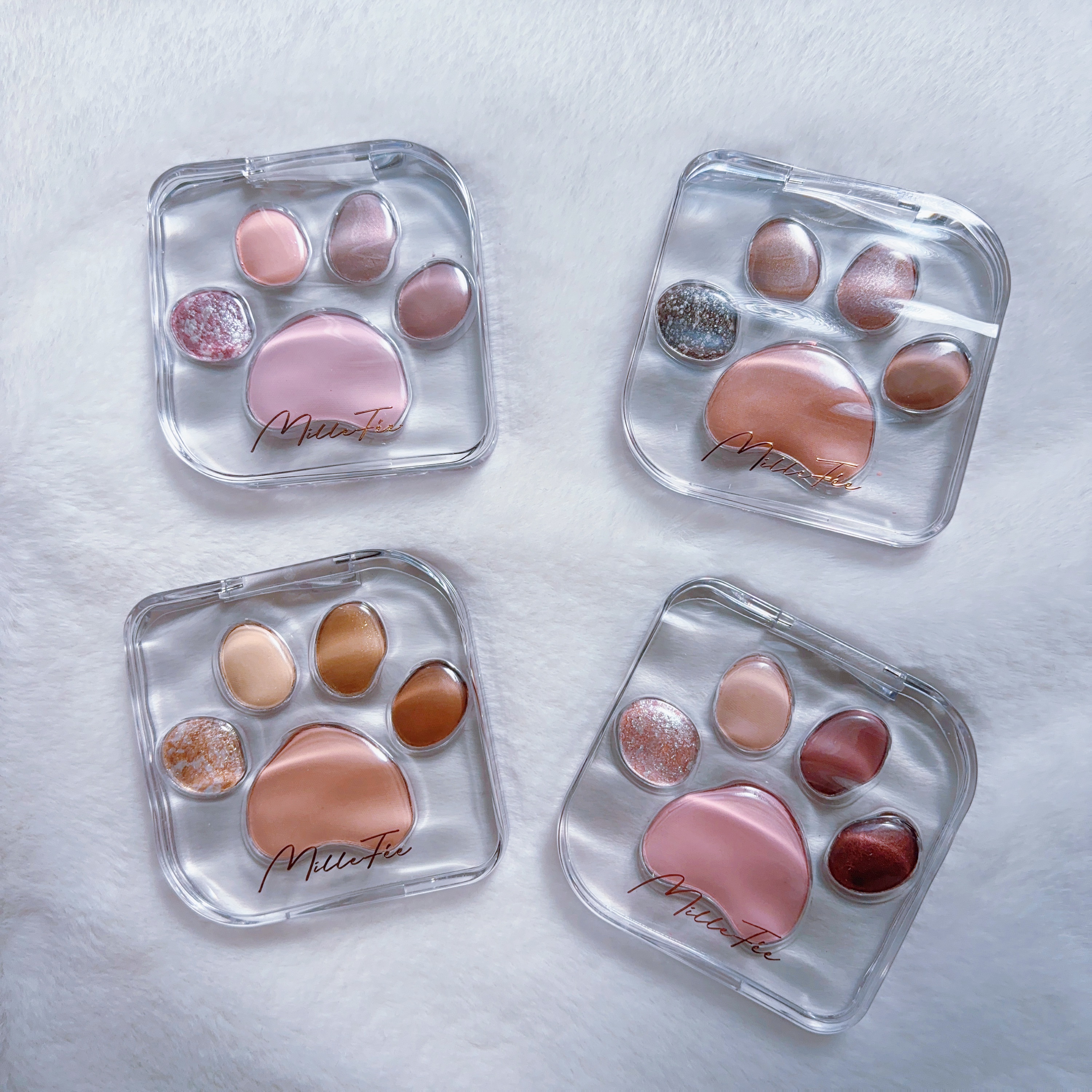 SNSでもバズりまくってるMilleFéeの肉球パレットに新色3色が仲間入り🐈🐾 パケもカラーも本当に可愛いんだけどそれぞれのカラー名もまた可愛いのよ... ガチャのミニチュアキーホルダーも可愛すぎて集めたい...🥺✨