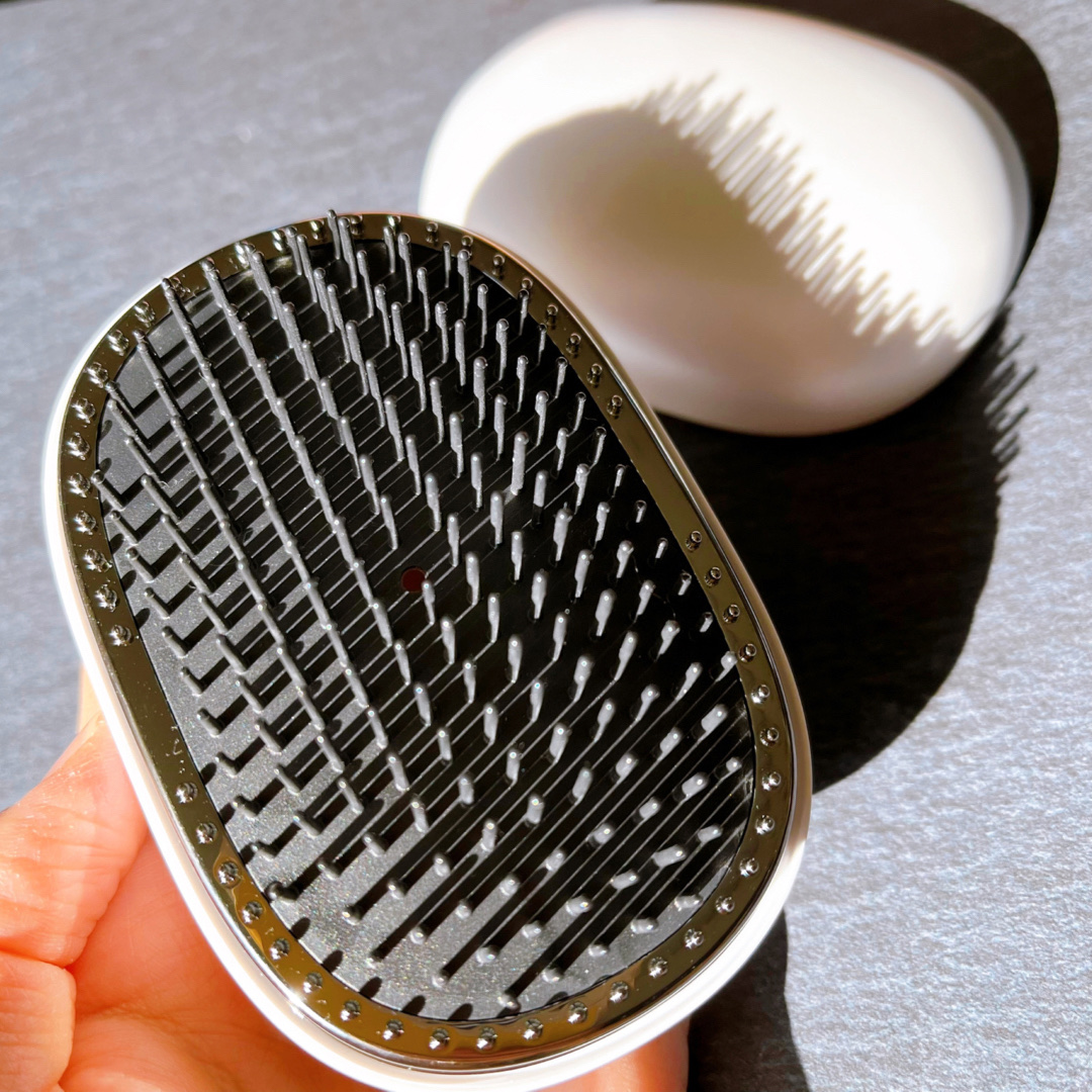 - 髪と地肌にやさしい使い心地、持ち運びにも便利なベースアップブラシ。 いつでも、どこでも、スタイリング。 POINT1:ころんっとスタイリッシュなデザイン ころんっとしたフォルムで、かわいいデザイン。 丸みのある、持ちやすい設計にしました。 POINT2:さらっとした仕上がりに メッキピン構造で、静電気を低減させ、とかすだけでさらさら髪に仕上がります。 POINT3:髪と地肌にやさしいとかし心地 3段階の高さのブラシピンで髪の絡まりを引っ張ることなく優しく解きほぐします。 クッション部は、クッション効果で地肌も気持よくとかせます。 POINT4:持ち運びに便利なカバー マグネットカバーでカチッと収納、ポーチもついて持ち運びもスマートに。 その他の特長 ・持ち運びや収納に便利なポーチ付き ・抗菌剤入り いつでも、どこでもさらっとまとまる髪に仕上がります。