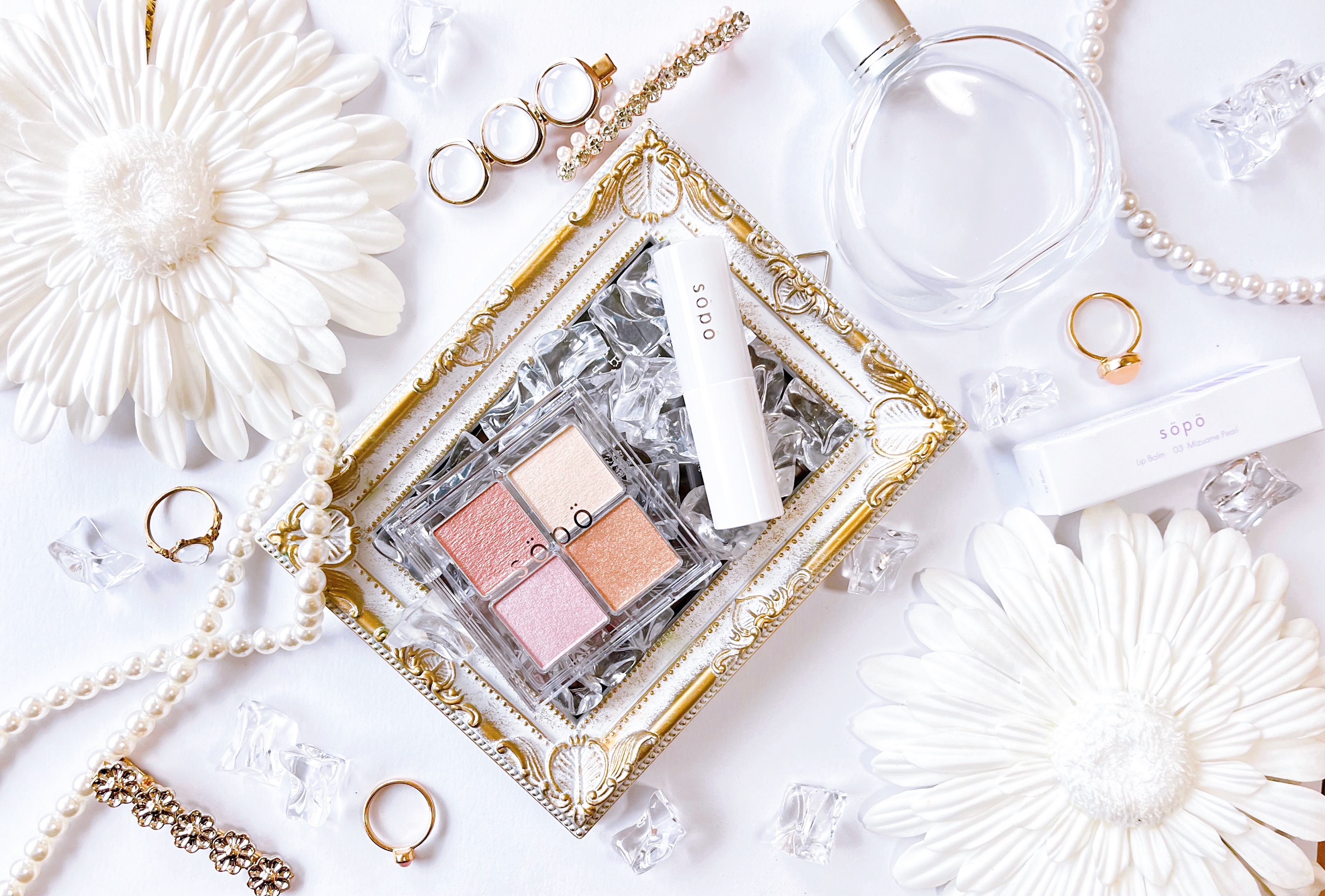 使う場所を選ばない、まばゆいパールが立体感をあたえるハイライトパレットはまさに万能すぎる! 上瞼、涙袋、鼻筋は勿論チークに重ねたり眉の上に乗せても立体感が🙆♀️左上のメタリックピンクが特に好きで単色でも出して欲しいくらい♡ ツヤと保湿に加え、様々な表情を見せるオーロラパール。 透け発色がつやめき、きらめき、メイクに透明感をプラス!これ単独でも可愛いけれどどんなリップと合わせても表情を変えてくれてお手持ちのリップと組み合わせてとても楽しそう!