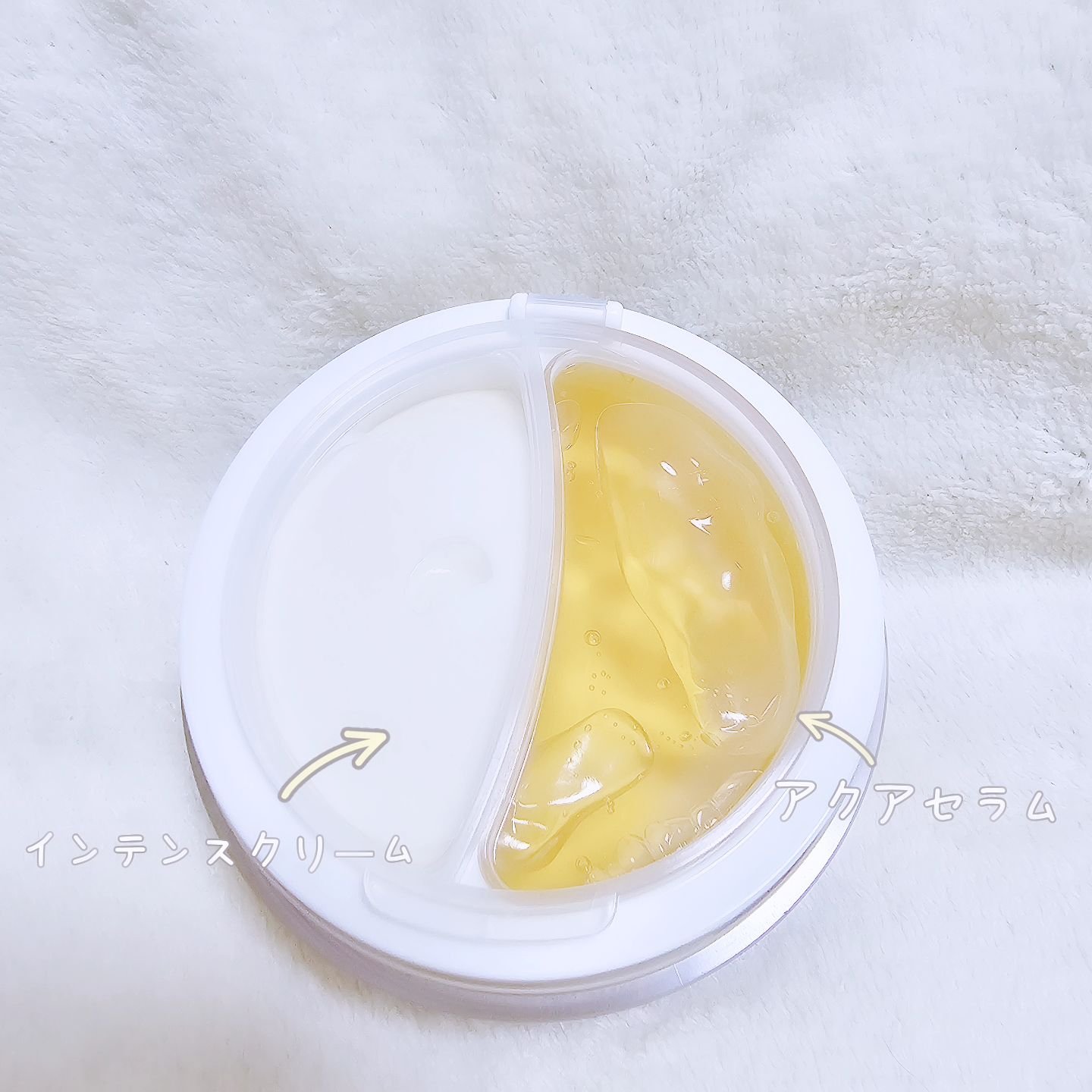 - アクサセラムとインテンスクリームのデュアル・フォーミュラで肌のタイプやコンディションに合わせて 比率を調節してカスタマイズ・ケアします。 ・アクアセラム:ヒアルロン酸、パンテノール、ツボクサエキス*が含まれた、さっぱりとした使用感で肌に水分を与え肌のキメを整えます。*ヒアルロン酸・パンテノール・ツボクサエキス(いずれも保湿成分) ・インテンスクリーム:イタリア産ホワイトトリュフ*が含まれた、もっちりした使用感で肌にうるおいを与えツヤのあるもち肌へ導きます。*ツベルマグナツムエキス(保湿成分) イタリアヴィーガン認証V-LABEL取得 皮膚低刺激テスト済み *全ての方に皮膚刺激が発生しないということではありません。 【使い方】 1. 洗顔後、スパチュラで肌のコンディションによって、セーラムとクリームを適量を取り、 ミックスしてから顔全体に優しく塗り広げ、 吸収させます。※ 必要に応じて、アクアセラムとインテンスクリームは単品でも使用できます。 【使用上の注意】 お肌に異常が生じていないかよく注意して使用してください。化粧品がお肌に合わないとき即ち次のような場合には、使用を中止してください。そのまま使用を続けますと、症状を悪化させることがありますので、皮ふ科専門医等にご相談されることをおすすめします。 (1)使用中、赤味、はれ、かゆみ、刺激、色抜け(白斑等)や黒ずみ等の異常があらわれた場合 (2)使用したお肌に、直射日光があたって(1)のような異常があらわれた場合