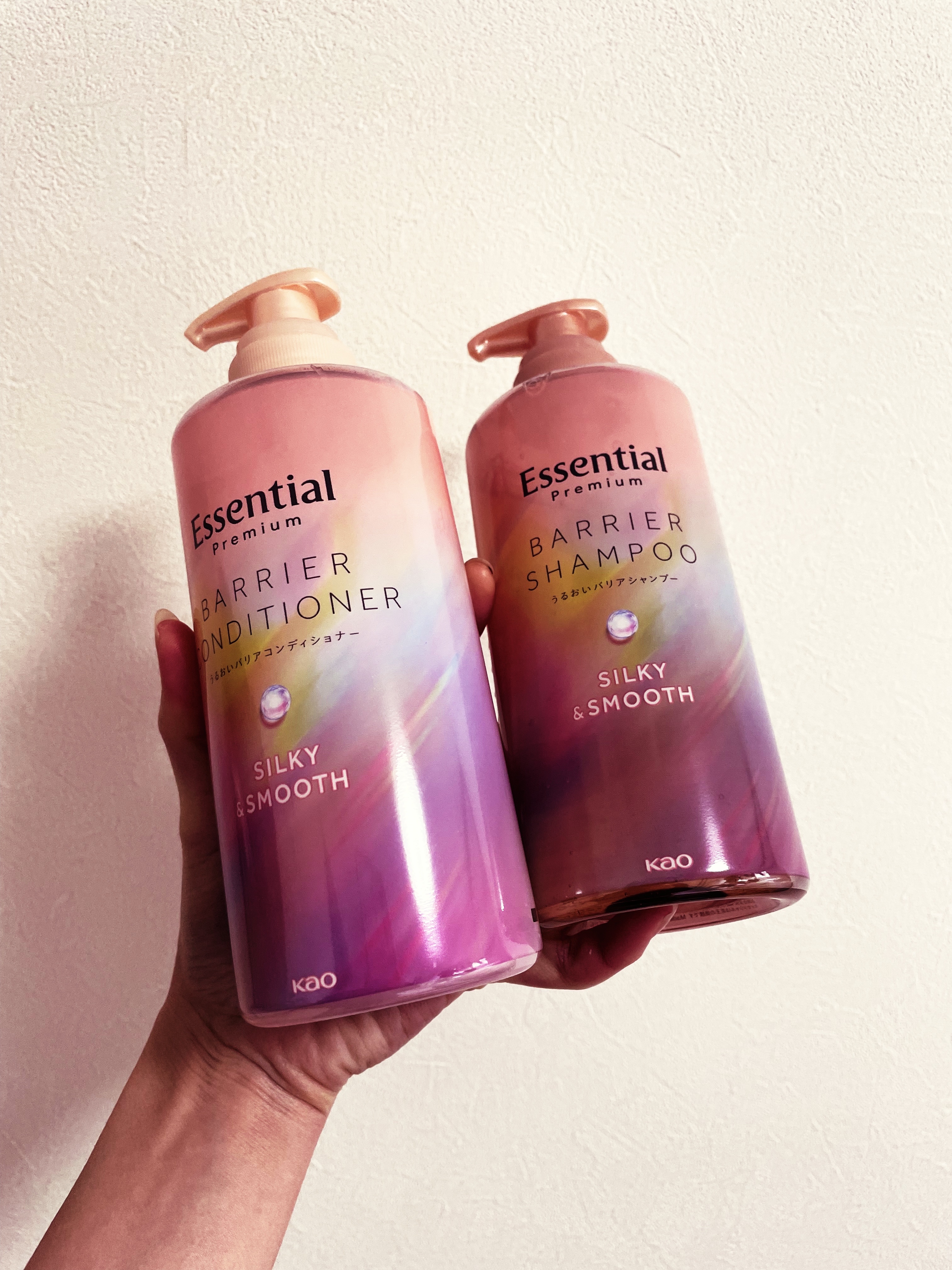 〜エッセンシャルプレミアムシルキー&スムース(ガーデニア&ジャスミン咲きわたるフローラルリュクスの香り)パサつく髪に。とろふわスフレ泡。翌朝するん!うるっとまとまり髪つづく〜✨香りと泡立ちはとてもよかった!✨洗い上がりが少しきしむ感じですがコ...