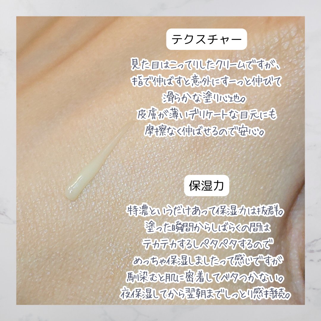 | スキンケアランキング第45位 | こっくりとしたテクスチャーのクリーム。 のびがいいというよりはその場にとどまってくれる感じ。 | 詳細を見る | |