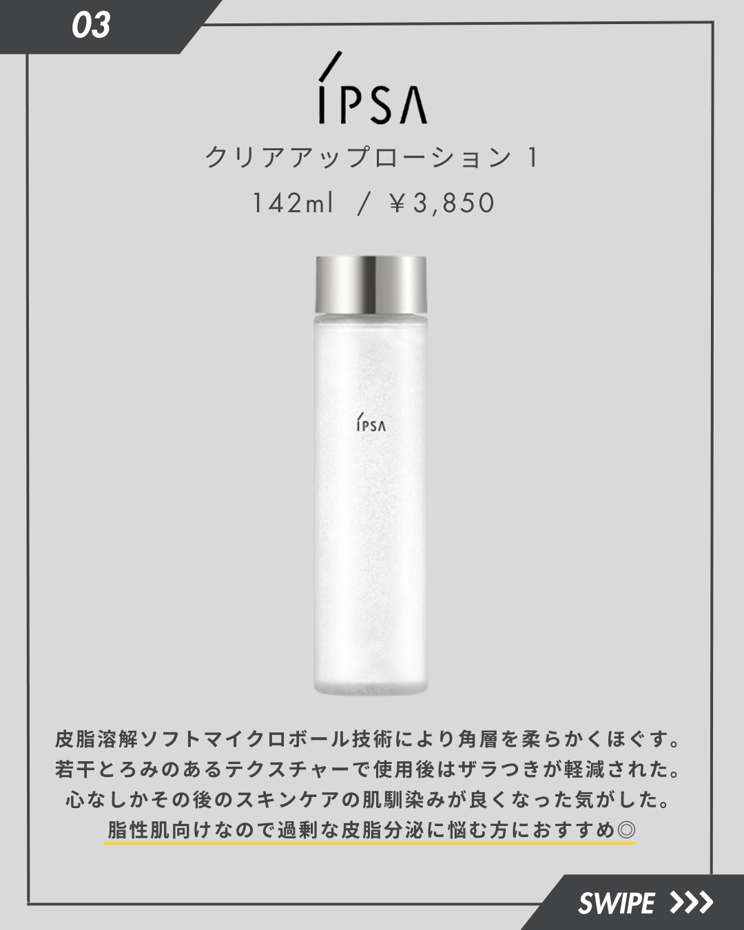 | 化粧水ランキング第89位 | ふきとりケアで肌の余分な汚れや皮脂を取ってくれるスキンケア♡ | 詳細を見る | |