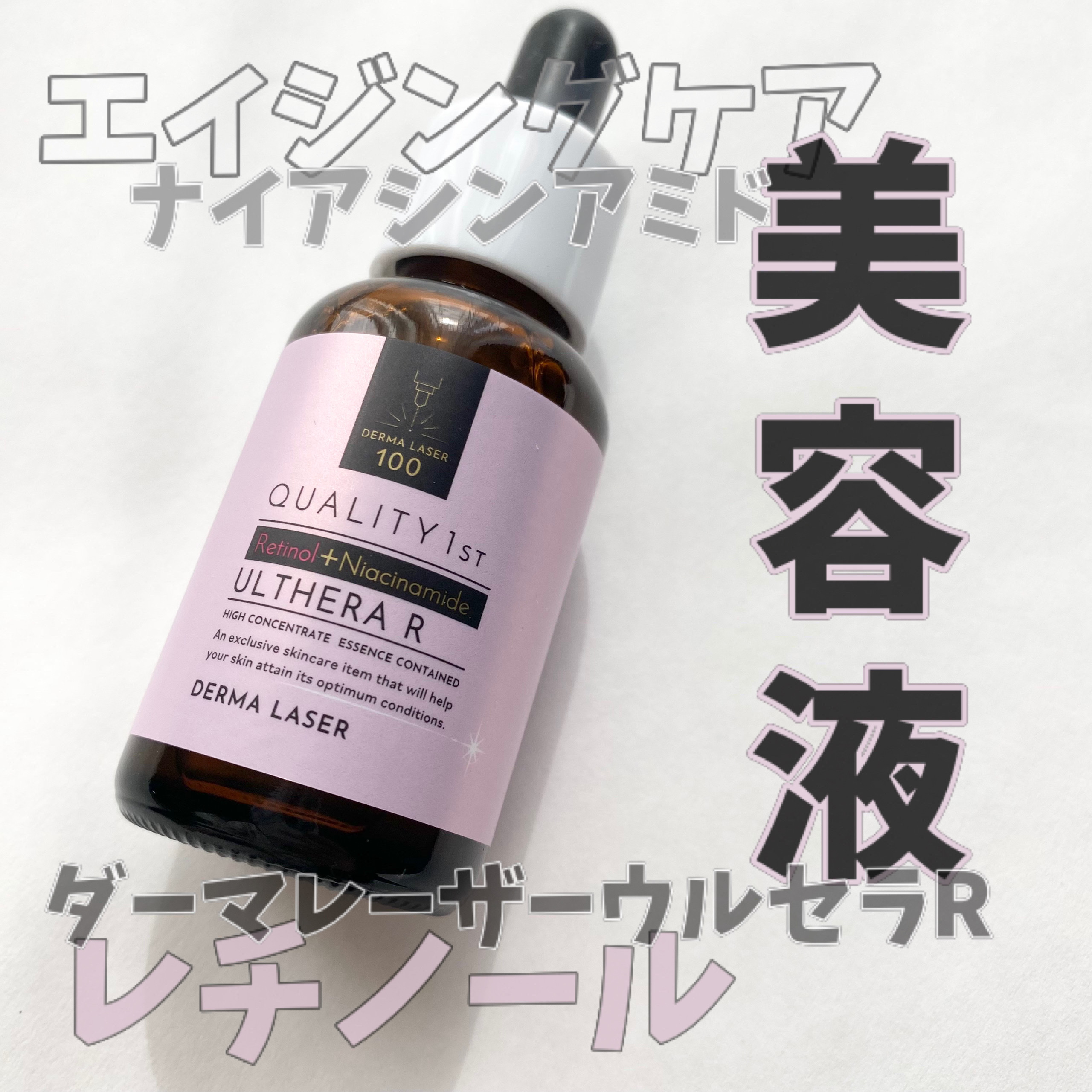- <ダーマレーザー ウルセラR> ガラクトミセス培養液、ナイアシンアミド、BG、ジグリセリン、1,2-ヘキサンジオール、レチノール、パルミチン酸レチノール、トコフェロール、スクワラン、セラミドNP、ベタイン、ツボクサエキス、オウゴン根エキス、イタドリ根エキス、カンゾウ根エキス、チャ葉エキス、ローズマリー葉エキス、カミツレ花エキス、トリプロピレングリコール、水添レシチン、フィトステロールズ、PEG-60水添ヒマシ油、エチルヘキシルグリセリン、カルボマー、ヒドロキシエチルセルロース、セテアリルアルコール、ポリソルベート20、ポリソルベート60、水酸化Na、クエン酸、クエン酸Na、エチドロン酸、水、ピーナッツ油、ラベンダー油、レモン果皮油、ライム油、レモングラス油、エンピツビャクシン