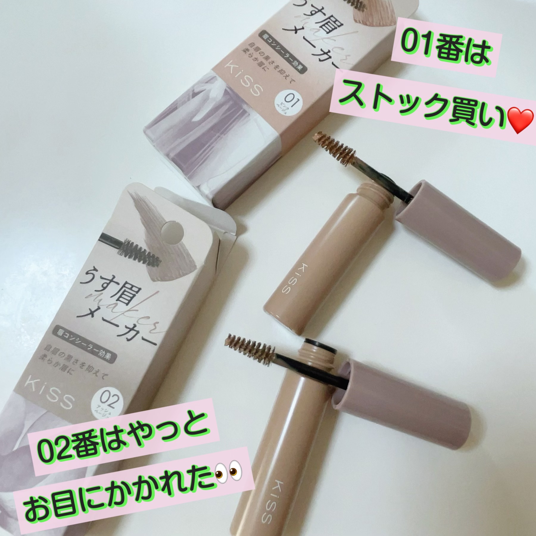 \やっと買えた💖/▶︎キス うす眉メーカー01バズって入手困難だった眉マスカラやっと手に入りました!眉毛が濃いめで眉マスカラ難民の私…友人からおすすめしてもらったので使ってみましたカラーは01ピンクベージュ塗った感じだとピンクっぽさはなくライ...