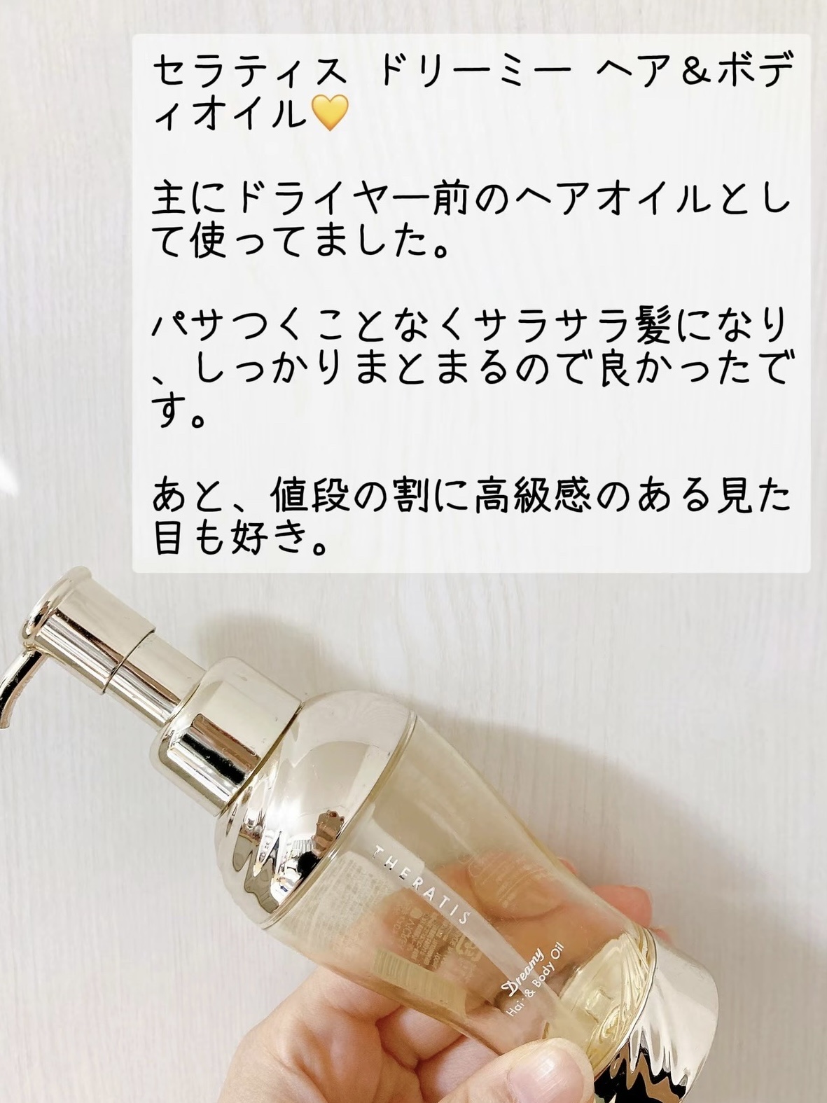 | ヘアケア・スタイリングランキング第23位 | さらっとした扱いやすいオイル ! ドライヤーの前に使うのはもちろん、乾いた髪につけてもベタつかなくてすごい! | 詳細を見る | |