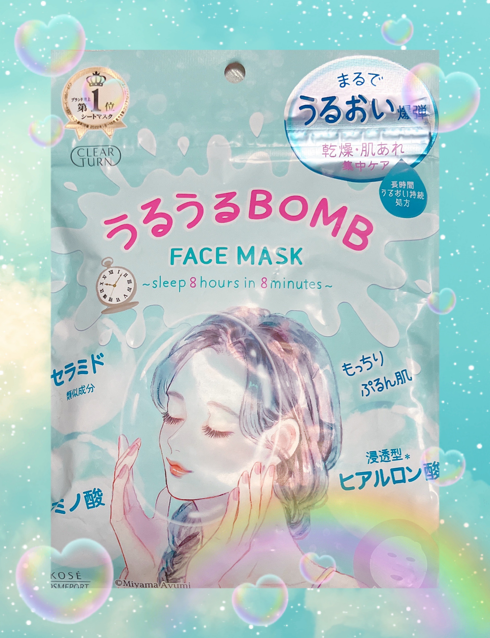 ✔クリアターンうるうるBOMBマスク7枚入りクリアターンのイラストシリーズ☺️こちらは保湿(潤い)に特化したパックです。潤い成分のセラミド、ヒアルロン酸が配合されていますが特に流行りの成分などはないかな?【白キクラゲ多糖体】ってのは初めて聞い...
