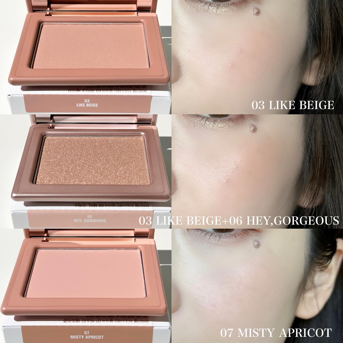 手に試した感じではベースのブルーは弱く、ラメ自体がブルーで可愛すぎる…! BAさんはパウダーアイシャドウのベースにもおすすめと教えてくれたので、 今日はこちらをベースにピンクブラウン系の アイシャドウを使ってメイクしてみたよ🫶🏻 肌に伸ばすとすぐにサラサラになるから ベタベタが残ったりしないし、 パウダーアイシャドウの上に重ねてもヨレない◎