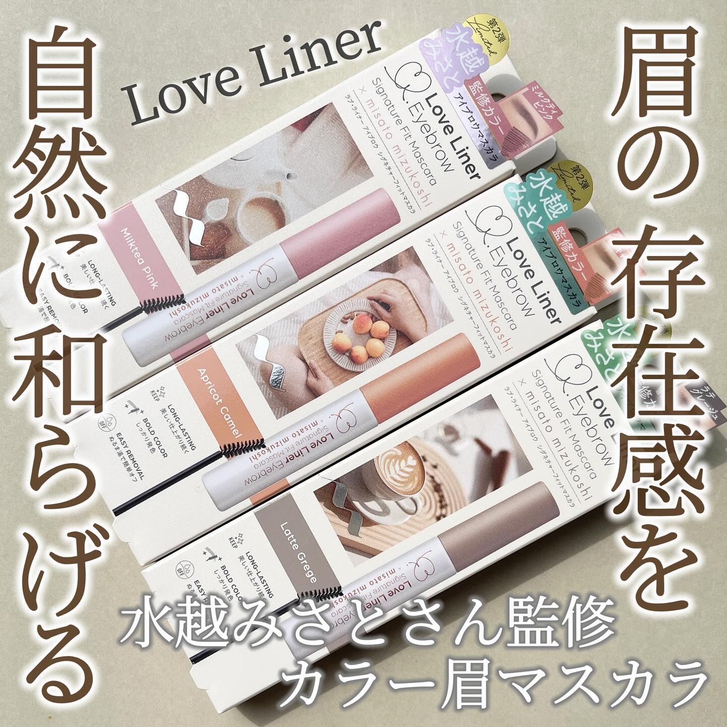 - 〈限定発売〉美容クリエイター水越みさとさん監修アイブロウマスカラ第2弾。 ・“眉の存在感を和らげる”ことをテーマに、春らしい絶妙なニュアンス感カラー。 ・地肌につきにくく塗りやすい角度つき極小ブラシ採用。 ・1本1本色づき自然になじむアイブロウマスカラ。 ミルクティピンク…温かみのある愛されピンクブラウン ラテグレージュ…ソフトな印象を与えるこなれグレーベージュ アプリコットキャメル…自然な抜け感が出るおしゃれオレンジブラウン