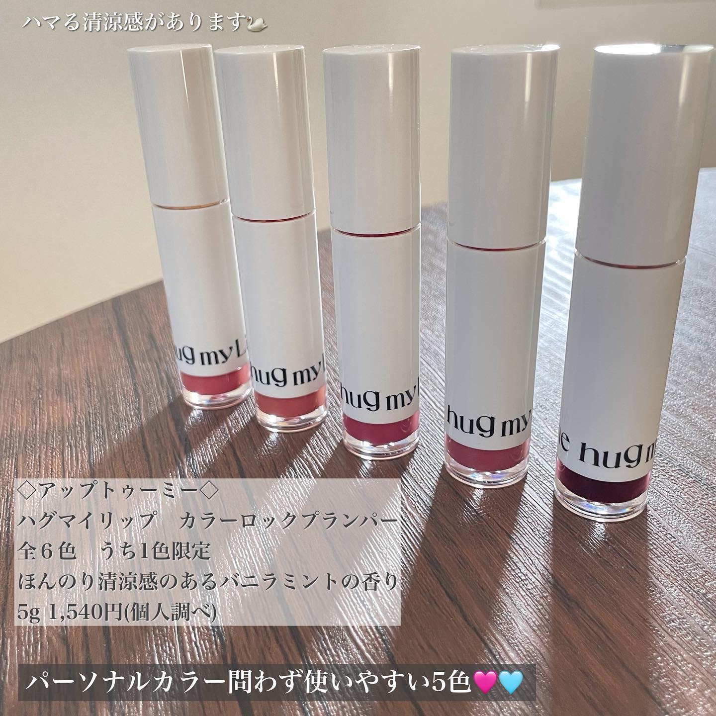 💄💋「UP2ME(アップトゥーミー))から誕生する【hugmyLip(ハグマイリップ)】をおためし。全色レビューしてみたのでぜひ、みんなも気になる色を探してみてね。さてさて〜【hugmyLip(ハグマイリップ)】の魅力はなんと言っても...1...