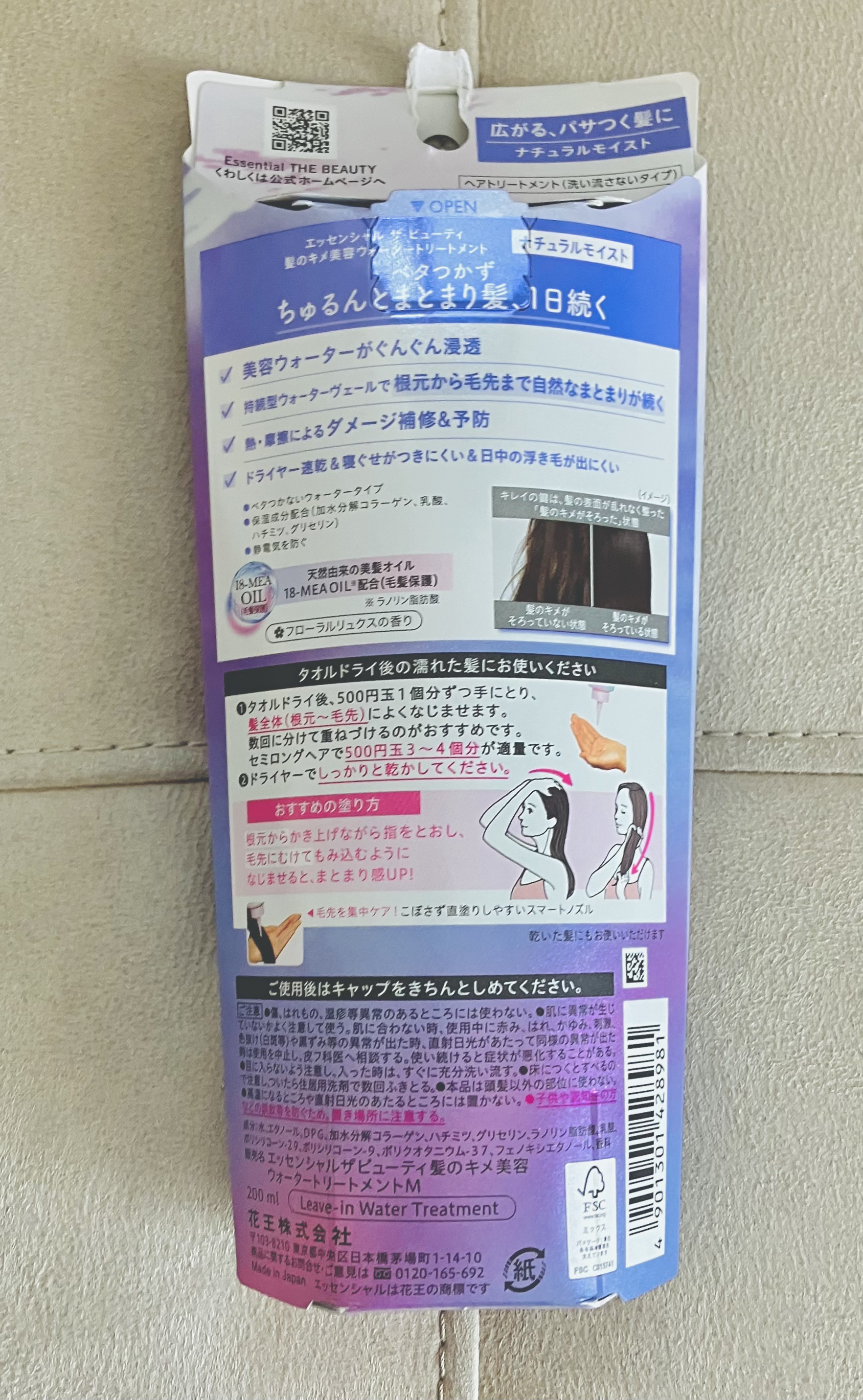 エッセンシャル エッセンシャル ザビューティ 髪のキメ美容ウォータートリートメント ホワイトティーの香り | 1,320円(編集部調べ) |