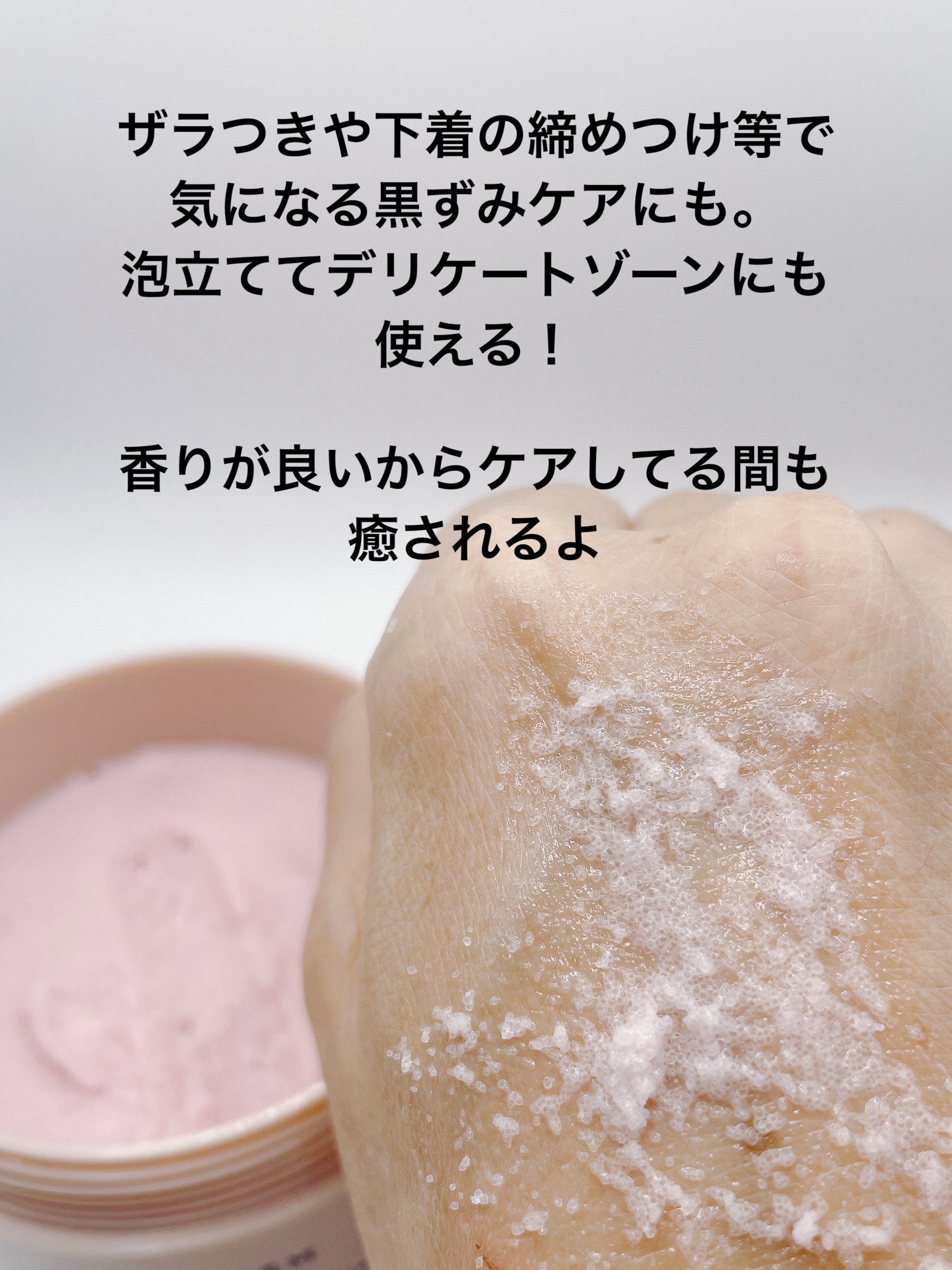 - 美容をもっとカジュアルに“AGARISM”とカワイイの欲望を知り尽くした雑誌sweetとのコラボ商品!女性のボディを魅力的にする重要なパーツ「お尻」。古い角質による黒ずみやザラツキ・乾燥ニキビ*などをケア。角質が気になるところにはスクラブとして、気になるデリケートゾーンは泡立てて全身ボディソープとしてOK。バスソルトとしても使える3WAYボディスクラブです。香りもやみつきになるフェロモンな香りにうっとりします! *洗浄によりニキビを防ぐ