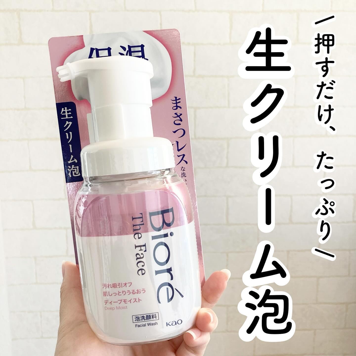 押すと、ホイップ泡で出てくる😍🧁ビオレTheフェイス泡洗顔料ディープモイスト🧁泡立てるのって、少し時間・手間がかかるよね🧼🫧これは泡立てなくて、そのまま使えて、便利🤩時短になるね!この泡がクリーミィーでなめらか☺️密着する生クリーム泡で、よご...