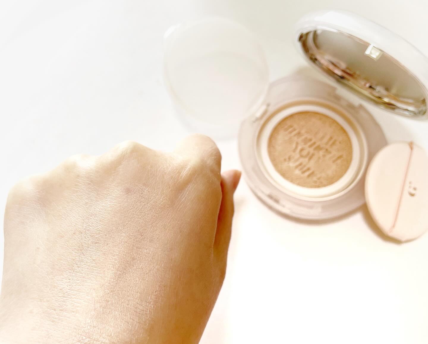 水分エッセンス62%、グルタチオンが含まれ、水分感たっぷりのテクスチャー密着力抜群のクッションです。 薄付きで厚塗り感もなく、肌キメ、ツヤ、トーンをバランスよく整えて素肌をきれいに見せてくれるクッションだと感じました! 韓国女子のすっぴんのような健康的なうるツヤ肌を目指す方にぜひ使ってみてもらいたいクッションです!