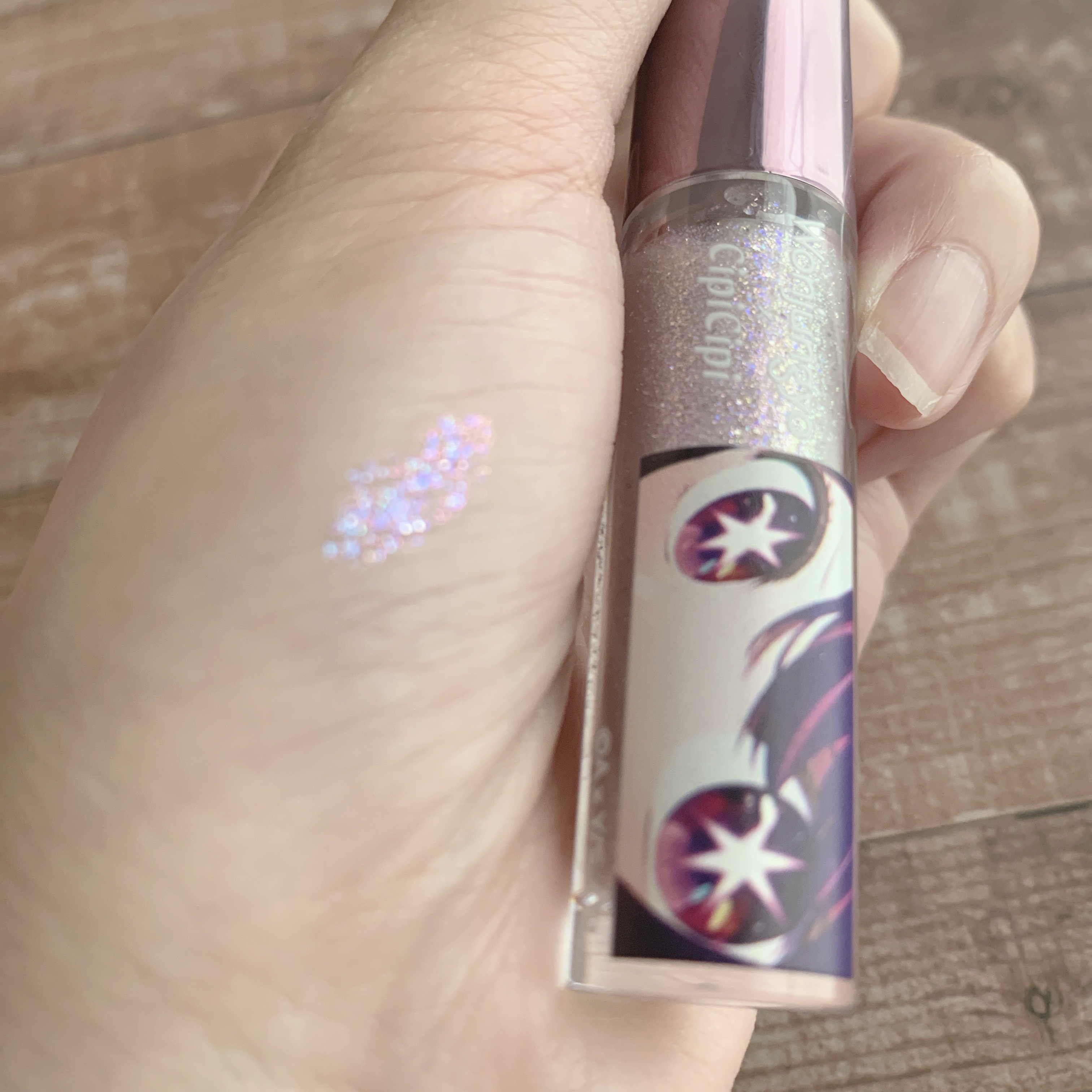 シルバーパールがきらめくアイドルラベンダーカラー シルバー、紫、青、黄、緑 大小様々な多色ラメがとても綺麗 のせすぎないために点のせするのが好み 下まぶた 黒目下あたりに極細でのせると動きでチラチラみえて綺麗でした 推しの子 コラボ #胸キュンコスメ特集