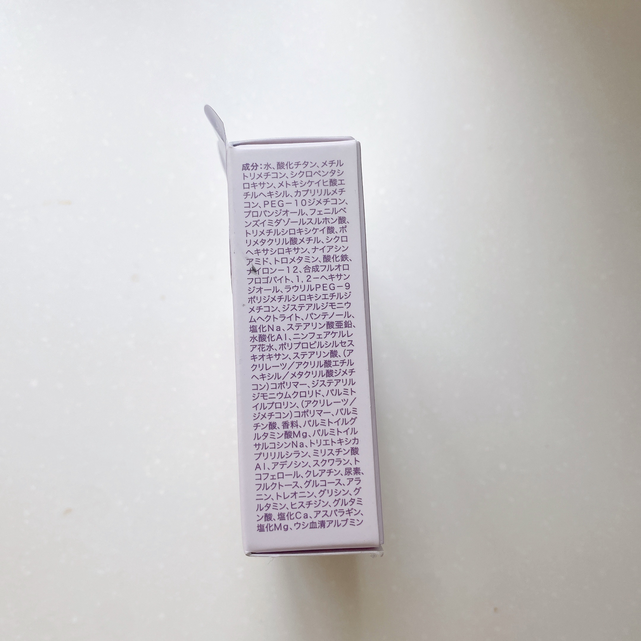 - <A02 明るいオークル(標準色)> 水、酸化チタン、メチルトリメチコン、シクロペンタシロキサン、メトキシケイヒ酸エチルヘキシル、カプリリルメチコン、PEG-10ジメチコン、プロパンジオール、フェニルベンズイミダゾールスルホン酸、トリメチルシロキシケイ酸、ポリメタクリル酸メチル、シクロヘキサシロキサン、ナイアシンアミド、合成フルオロフロゴパイト、トロメタミン、ナイロン-12、酸化鉄、1,2-ヘキサンジオール、ラウリルPEG-9ポリジメチルシロキシエチルジメチコン、ジステアルジモニウムヘクトライト、パンテノール、塩化Na、ステアリン酸亜鉛、水酸化Al、ニンフェアケルレア花水、ポリプロピルシルセスキオキサン、ステアリン酸、(アクリレーツ/アクリル酸エチルヘキシル/メタクリル酸ジメチコン)コポリマー、ジステアリルジモニウムクロリド、パルミトイルプロリン、(アクリレーツ/ジメチコン)コポリマー、パルミチン酸、香料、パルミトイルグルタミン酸Mg、パルミトイルサルコシンNa、ミリスチン酸Al、アデノシン、トリエトキシカプリリルシラン、スクワラン、トコフェロール、クレアチン、尿素、フルクトース、グルコース、アラニン、トレオニン、グリシン、グルタミン、ヒスチジン、グルタミン酸、塩化Ca、アスパラギン、塩化Mg、ウシ血清アルブミン <V02 明るいベージュオークル> 水、酸化チタン、メチルトリメチコン、シクロペンタシロキサン、メトキシケイヒ酸エチルヘキシル、カプリリルメチコン、PEG-10ジメチコン、プロパンジオール、フェニルベンズイミダゾールスルホン酸、トリメチルシロキシケイ酸、ポリメタクリル酸メチル、シクロヘキサシロキサン、ナイアシンアミド、合成フルオロフロゴパイト、トロメタミン、ナイロン-12、酸化鉄、1,2-ヘキサンジオール、ラウリルPEG-9ポリジメチルシロキシエチルジメチコン、ジステアルジモニウムヘクトライト、パンテノール、塩化Na、ステアリン酸亜鉛、水酸化Al、ニンフェアケルレア花水、ポリプロピルシルセスキオキサン、ステアリン酸、(アクリレーツ/アクリル酸エチルヘキシル/メタクリル酸ジメチコン)コポリマー、ジステアリルジモニウムクロリド、パルミトイルプロリン、(アクリレーツ/ジメチコン)コポリマー、パルミチン酸、香料、パルミトイルグルタミン酸Mg、パルミトイルサルコシンNa、ミリスチン酸Al、アデノシン、トリエトキシカプリリルシラン、スクワラン、トコフェロール、クレアチン、尿素、フルクトース、グルコース、アラニン、トレオニン、グリシン、グルタミン、ヒスチジン、グルタミン酸、塩化Ca、アスパラギン、塩化Mg、ウシ血清アルブミン <V03 自然なベージュオークル> 水、酸化チタン、メチルトリメチコン、シクロペンタシロキサン、メトキシケイヒ酸エチルヘキシル、カプリリルメチコン、PEG-10ジメチコン、プロパンジオール、フェニルベンズイミダゾールスルホン酸、トリメチルシロキシケイ酸、ポリメタクリル酸メチル、シクロヘキサシロキサン、ナイアシンアミド、合成フルオロフロゴパイト、トロメタミン、ナイロン-12、酸化鉄、1,2-ヘキサンジオール、ラウリルPEG-9ポリジメチルシロキシエチルジメチコン、ジステアルジモニウムヘクトライト、パンテノール、塩化Na、ステアリン酸亜鉛、水酸化Al、ニンフェアケルレア花水、ポリプロピルシルセスキオキサン、ステアリン酸、(アクリレーツ/アクリル酸エチルヘキシル/メタクリル酸ジメチコン)コポリマー、ジステアリルジモニウムクロリド、パルミトイルプロリン、(アクリレーツ/ジメチコン)コポリマー、パルミチン酸、香料、パルミトイルグルタミン酸Mg、パルミトイルサルコシンNa、ミリスチン酸Al、アデノシン、トリエトキシカプリリルシラン、スクワラン、トコフェロール、クレアチン、尿素、フルクトース、グルコース、アラニン、トレオニン、グリシン、グルタミン、ヒスチジン、グルタミン酸、塩化Ca、アスパラギン、塩化Mg、ウシ血清アルブミン