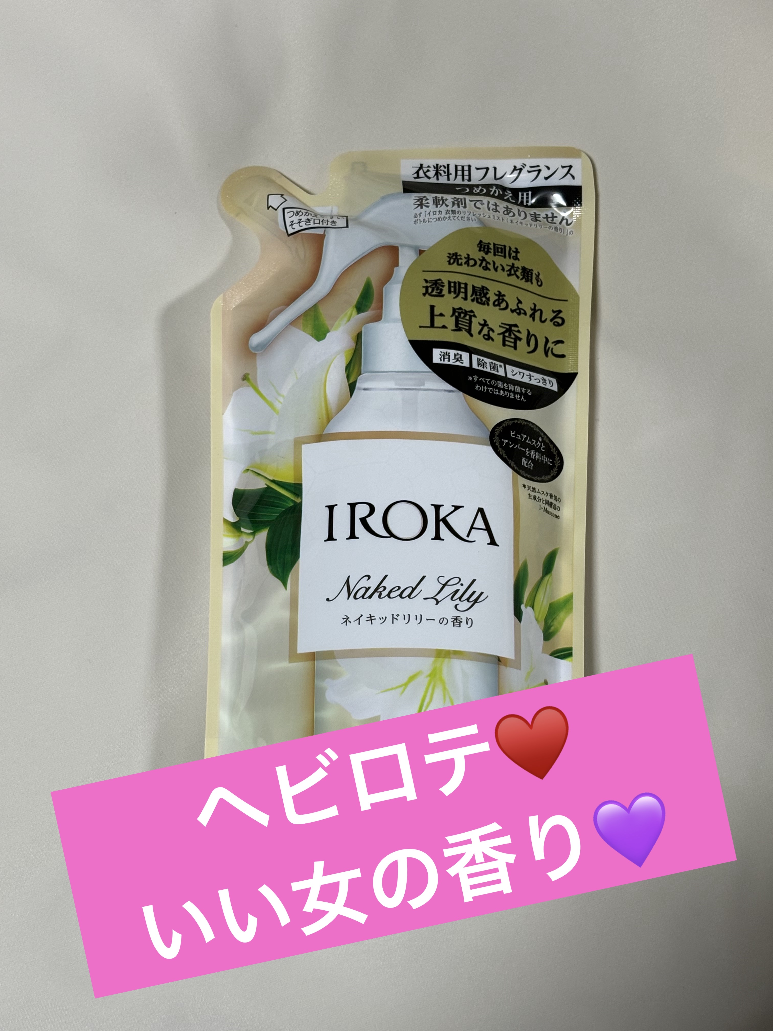 IROKA衣料用フレグランスミストネイキッドリリー・IROKAの衣料用フレグランスミストです!・香りはネイキッドリリーです!💐🤍・テスターの香りを嗅いでて一番好きな香りだったので購入しました✨️・外出してちょっとコートとかすぐ洗濯できないもの...