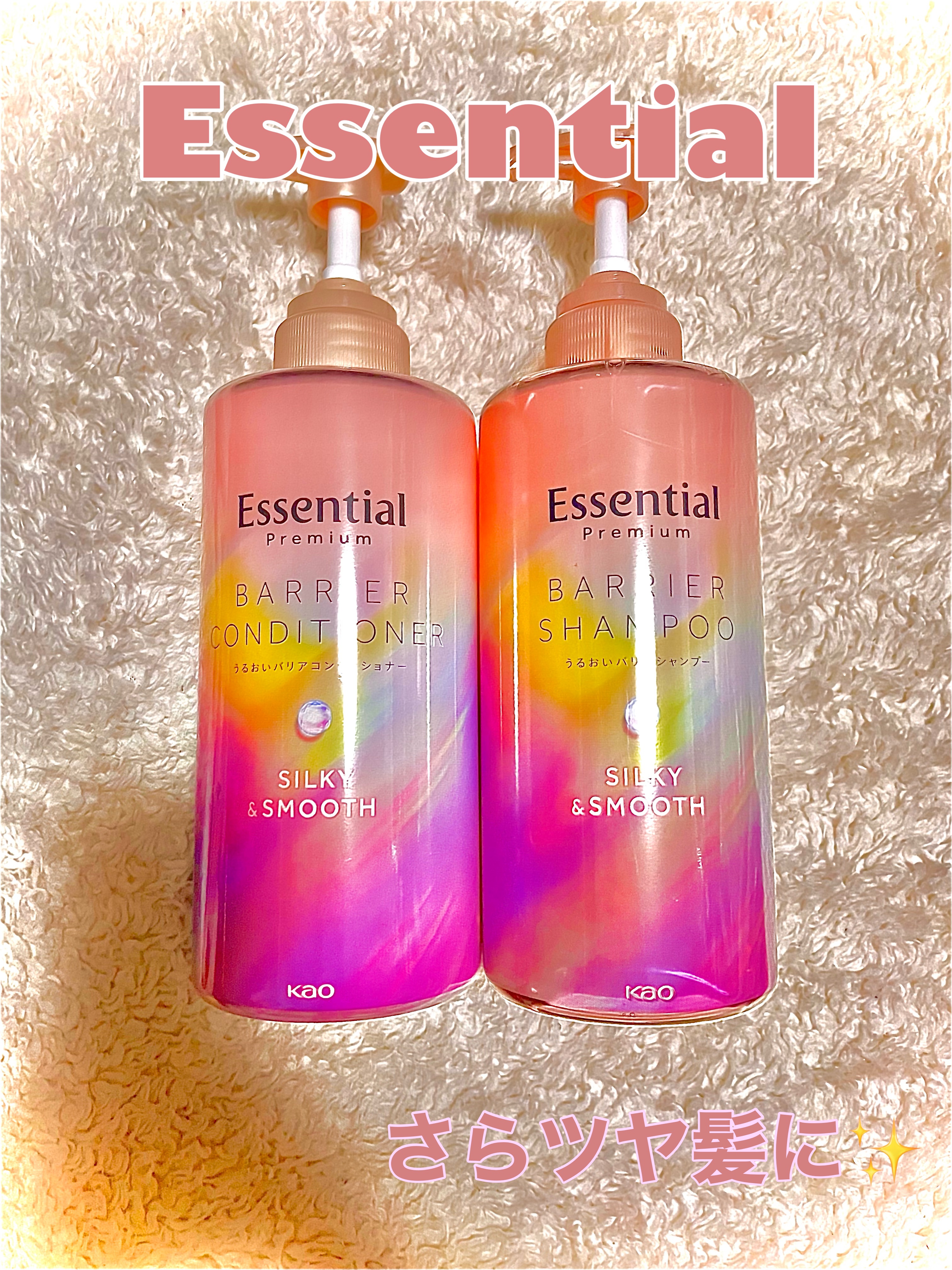 Essentialエッセンシャル🌸エッセンシャルプレミアムバリアシャンプーコンディショナーシルキー&スムースアットコスメ様からお試しサンプル🎁いただきました🐦ありがとうございます💓🪷気持ち良く心地よいとろふわな泡立ちでサラサラツヤツヤスル〜っ...
