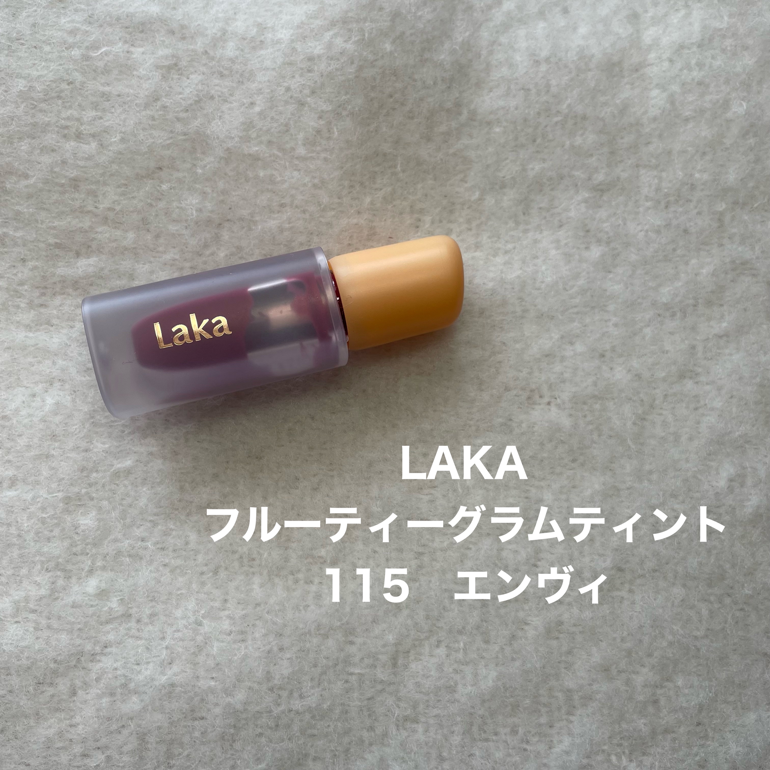 Lakaフルーティーグラムティント115エンヴィ¥1,980皆さんこんにちは♡今回は念願の#LAKA#フルーティーグラムティントを購入したのでレビューします!今回私は115エンヴィを購入。めちゃくちゃブルベ向きで嬉しい…😭塗り心地は個人的にC...