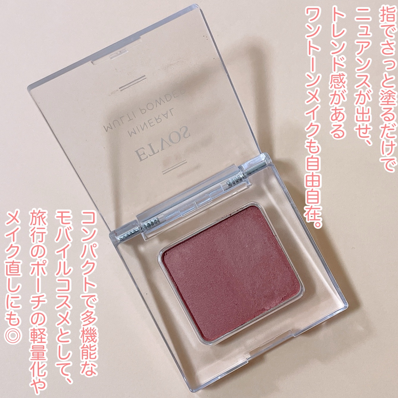 - 目元から頬、唇までマルチに使える、セミマットの単色パウダー。 指で塗るだけでニュアンスが出て、旬のワントーンメイクも自由自在。 お肌のことを考えたミネラル処方で、トレンドメイクを楽しめます。